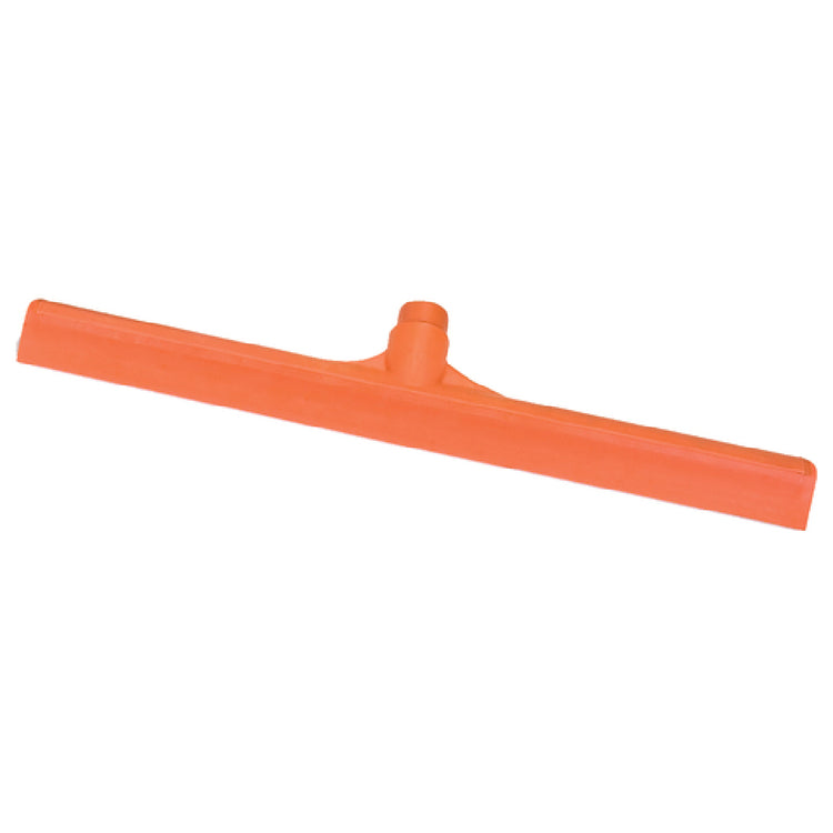 The Carlisle 3656824 Carlisle Sparta® Floor Squeegee Head (only), 24" Long Straight, is a robust cleaning tool designed to meet the rigorous demands of various industries requiring efficient surface maintenance. The squeegee features a solid one-piece construction, ensuring durability and reliability during use. It is specifically designed for smooth surfaces, making it a versatile choice for environments such as hospitals, commercial kitchens, and manufacturing facilities where hygiene and effective cleaning are paramount. The threaded handle hole allows for easy attachment of a compatible handle (sold separately), enhancing its adaptability to different user preferences and needs. The squeegee head is equipped with a rust and bend resistant rubber blade, providing long-lasting performance and minimizing the need for frequent replacements. Its plastic frame is not only sturdy but also lightweight, contributing to ease of use and maneuverability. The vibrant orange color ensures high visibility, reducing the risk of accidents in busy workspaces. Significantly, this product is HACCP compliant, underscoring its suitability for environments adhering to strict health and safety standards. The Carlisle 3656824 squeegee head stands out as a reliable, efficient, and adaptable tool for professionals seeking quality floor maintenance solutions.