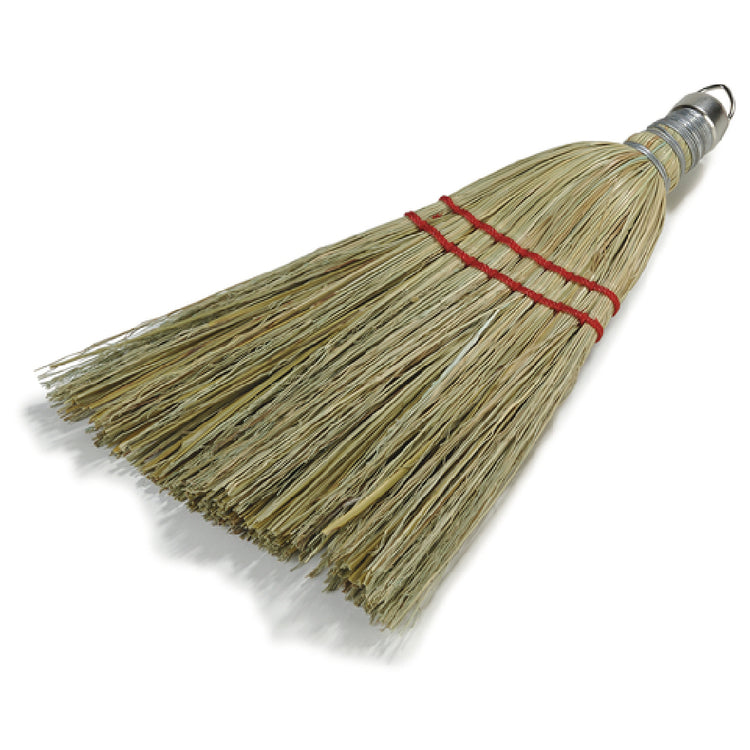 The Carlisle 3663300 Carlisle Flo-Pac Corn Whisk Broom is a compact yet highly effective cleaning tool designed with practicality and durability in mind. The broom measures 10 inches in length and is crafted for efficiency in both domestic and industrial cleaning tasks. Its construction features a two-sew synthetic stitching that securely binds the blended corn bristles, ensuring they remain intact even during rigorous use. The blended corn bristles are especially suited for sweeping away fine debris and dust, making it a reliable choice for maintaining cleanliness in various environments. Enhancing its durability and ease of use, the broom is equipped with a sturdy metal cap that includes a convenient hanging hook, allowing for easy storage and accessibility. Its traditional corn color not only highlights its authentic design but also complements a wide range of cleaning tools and accessories. The Carlisle 3663300's design caters to diverse market segments, including janitorial services, residential cleaning, and facility maintenance, offering a dependable solution for those seeking a resilient and effective cleaning implement. Whether utilized in a small business, home, or large-scale facility, this broom stands out as a staple in efficient cleaning equipment.