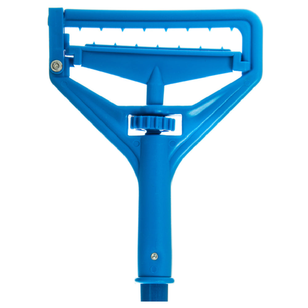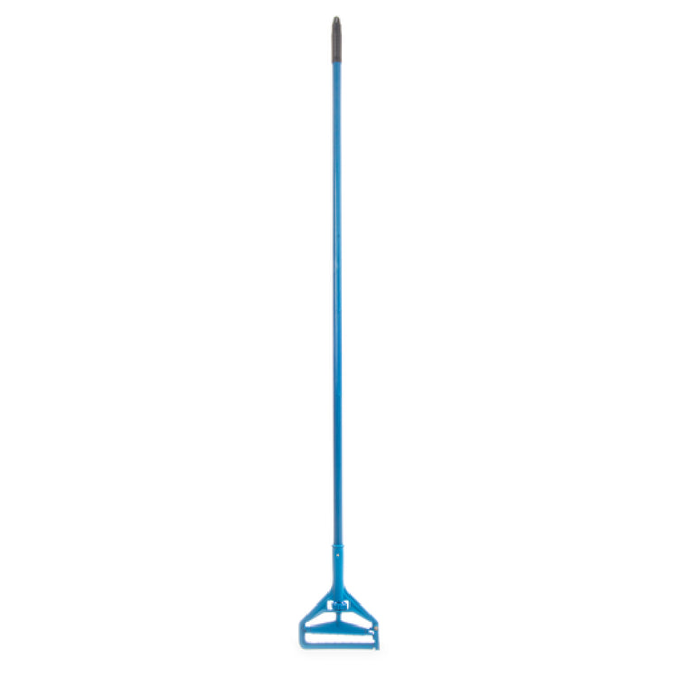 The Carlisle 36937500 Carlisle Quick-Change Mop Handle is a 60-inch-long cleaning tool designed with a 1-inch diameter, specifically crafted to enhance the efficiency and comfort of janitorial tasks across various sectors. This mop handle features a durable blue fiberglass construction, which provides a lightweight yet resilient solution for frequent use in high-traffic environments such as commercial, industrial, and healthcare facilities. The plastic head of the handle is engineered for quick and seamless mop changes, reducing downtime and improving productivity during cleaning operations. Its standard color ensures compatibility with a wide range of mop heads, catering to diverse cleaning needs and preferences. This product's robust design supports reliable performance and longevity, making it a preferred choice for professional cleaning services seeking both efficiency and durability in their equipment. By integrating these technical specifications, the Carlisle 36937500 mop handle accommodates the rigorous demands of the cleaning industry while offering a user-friendly experience to maintenance personnel.