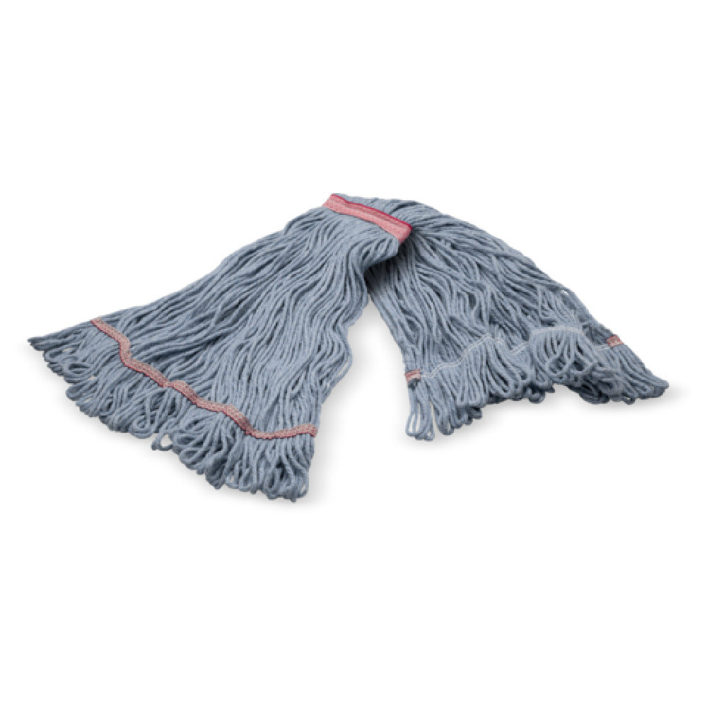 The Carlisle 369423B14 Carlisle Wet Mop Head Large Looped-end is a high-performance cleaning tool designed for efficiency and durability in various environments. This large mop head features a looped-end construction, which enhances its ability to cover extensive areas while minimizing linting and fraying, thereby extending its lifespan. Crafted from blue 4-ply acrylic fiber, this mop head is engineered for superior absorbency and strength, making it an excellent choice for tackling heavy-duty cleaning tasks. The non-pre-shrunk design ensures that the mop head maintains its size and effectiveness after repeated use and laundering. A 1-inch wide red band adds a distinct touch, providing easy identification and compatibility with a variety of mop handles. Suitable for use in commercial, industrial, and institutional settings, this mop head offers a versatile cleaning solution that caters to the rigorous demands of janitorial services, healthcare facilities, and hospitality sectors. By incorporating durable materials and a practical design, the Carlisle 369423B14 Wet Mop Head delivers a reliable and efficient cleaning experience tailored to meet the needs of professional maintenance teams across diverse market segments.