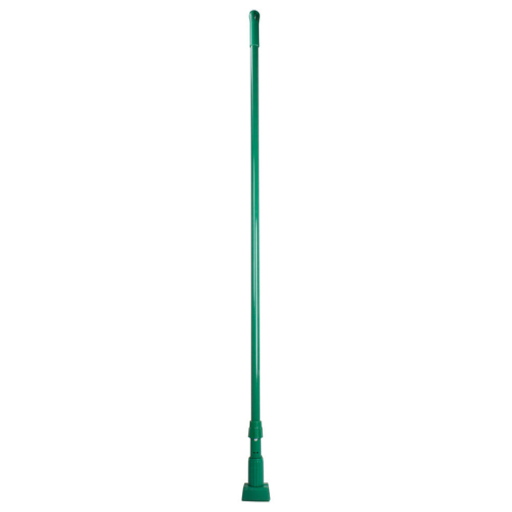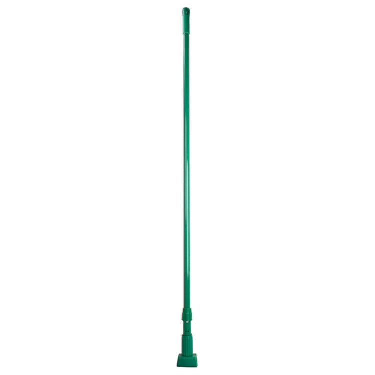 The Carlisle 369475EC09 Carlisle Mop Handle 60" Long 1" Dia. is a durable and versatile cleaning tool designed for professional use across various industry segments. This mop handle is distinguished by its 60-inch length and 1-inch diameter, providing an ideal size and grip for effective cleaning operations. Made from sturdy fiberglass, it ensures longevity and reliable performance, catering to demanding environments. The handle features a jaw style, specifically engineered to be used with wide band mop heads, enhancing its adaptability and efficiency in maintaining cleanliness in large areas. Its vibrant green color not only makes it easily identifiable in a crowded storage area but also adds a touch of modernity to the utility tool. The Carlisle 369475EC09 is a testament to robust construction and ergonomic design, making it a prime choice for janitorial staff, custodial teams, and cleaning contractors seeking a dependable mop handle that can withstand rigorous daily use. This product is a reflection of CFS Brands' commitment to quality and innovation in the cleaning industry, providing a practical solution that meets the diverse cleaning needs of professionals in various sectors.