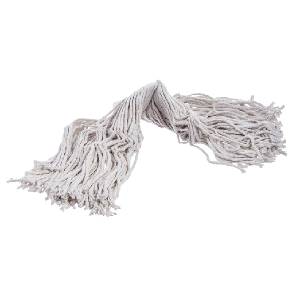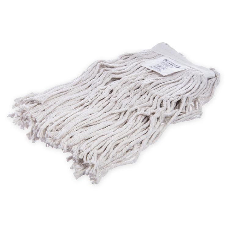 The Carlisle 369816B00 Carlisle Flo-Pac® Wet Mop Head #16 Small is a specialized cleaning tool designed for efficient and reliable performance in various commercial and industrial environments. This mop head features a 4-ply construction of cut-end natural cotton yarn, which is highly absorbent and suitable for everyday cleaning tasks. The product is characterized by its small size designation, #16, which makes it particularly suited for intricate cleaning tasks or smaller surface areas. A distinct feature of the Carlisle Flo-Pac® Wet Mop Head is its 1-1/4” wide textured polyester band, which adds durability and aids in the even distribution of cleaning solutions. This quality enhances its effectiveness across different types of flooring, making it a versatile choice for sectors such as hospitality, healthcare, and facilities maintenance. Professionals in these industries value the mop head's natural cotton construction for its ability to absorb spills rapidly while the cut-end design allows for complete utilization of fibers. Its lightweight nature not only facilitates easy maneuverability but also supports fatigue-free cleaning operations. Overall, the Carlisle 369816B00 is an exemplary product that provides an ideal balance of functionality and cost-effectiveness, catering to the specific needs of professional cleaners seeking efficiency and reliability in their cleaning routines.
