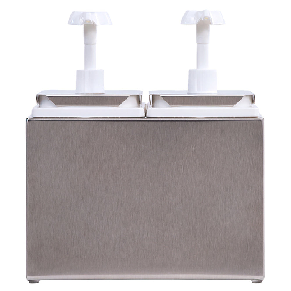 The Carlisle 38502 Carlisle Topping Rail Dispenser is a double-unit countertop design, making it a practical addition to any commercial food service operation. Measuring 9-5/8"L x 7-3/4"W x 10-3/4"H, this dispenser is compact yet efficient, saving valuable counter space while providing functionality. It features two standard pumps, each paired with removable 2-1/2 quart jars, allowing for easy cleaning and refilling. The inclusion of two restrictor clips supports portion control, with options for 1/2 and 1-ounce servings, making it suitable for managing ingredient costs and ensuring consistency across servings. Non-slip rubber footing ensures stability during operation, a critical feature for busy environments. Crafted from 18/8 stainless steel, this dispenser promises durability and resistance to corrosion, maintaining its appearance and performance over time. The Carlisle 38502 model caters to a wide range of market segments within the food industry, from ice cream parlors to salad bars, providing a reliable solution for topping distribution. Its versatile design and robust construction make it an essential tool for businesses aiming to streamline their topping service while maintaining high standards of hygiene and efficiency.