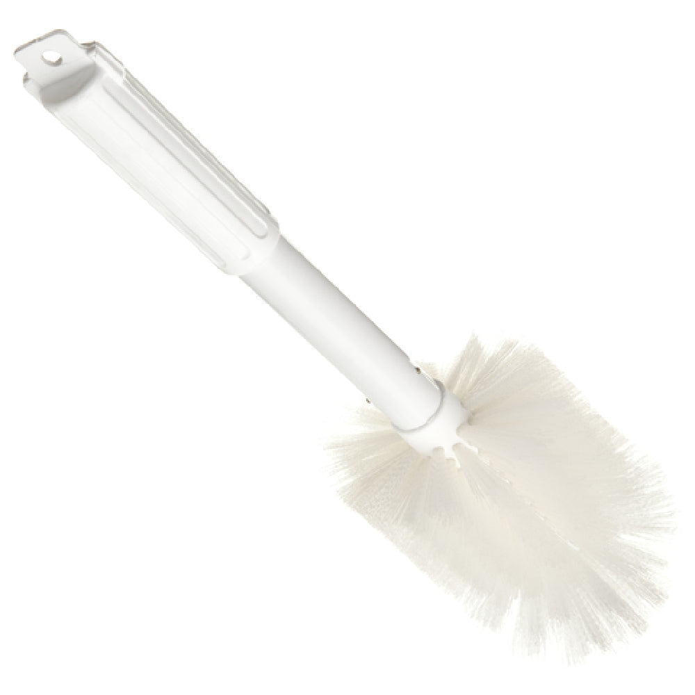 The Carlisle 4000202 Carlisle Spectrum® Multi-Purpose Valve & Fitting Brush - 16" Long is an essential tool designed for comprehensive maintenance across various industries. It features a robust 6"L x 3-1/2 to 5" diameter oval head, effectively addressing the cleaning needs of valves and fittings of differing sizes. The brush is equipped with medium stiff polyester bristles, ensuring the removal of tough residues without damaging the surfaces. A white plastic handle offers a comfortable grip, enhancing user control during operation. This product is characterized by its BPA-free composition, aligning with health safety standards. The 16-inch length provides extended reach, making it suitable for tasks in hard-to-access areas. Its design accommodates a broad spectrum of applications, from food service industries requiring stringent hygiene standards to industrial settings where precision cleaning is paramount. By combining durability with functionality, the Carlisle Spectrum® Multi-Purpose Valve & Fitting Brush meets the diverse cleaning demands of professional environments, guaranteeing efficiency and reliability in every use. This brush is a versatile asset, engineered to maintain the integrity of equipment and components through consistent maintenance practices. Whether utilized in commercial kitchens or mechanical workshops, it supports the rigorous cleaning protocols necessary for optimal operational performance.