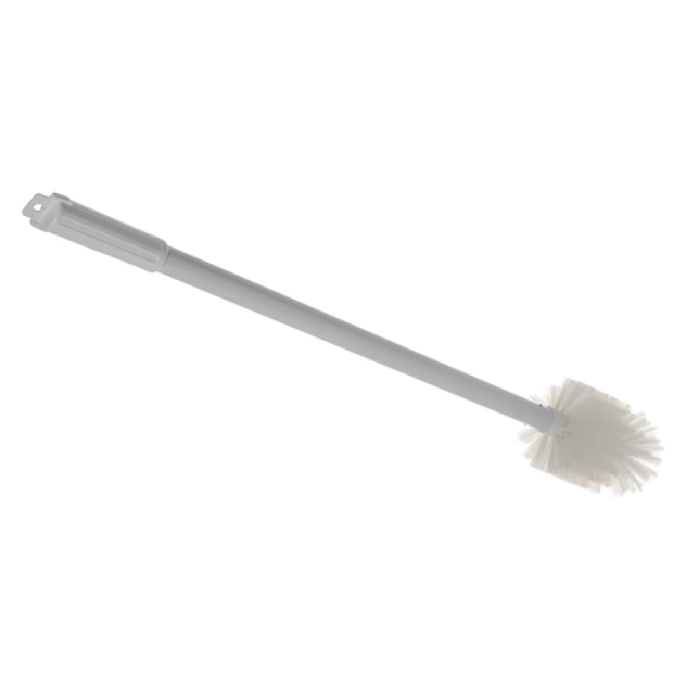 The Carlisle 4000702 Carlisle Sparta® Multi-Purpose Valve & Fitting Brush 30" Long is a high-performance cleaning tool designed for comprehensive maintenance in industrial settings. This brush features a 6"L x 4" diameter round head that ensures efficient cleaning of various valves and fittings. The medium stiff polyester bristles are engineered to provide optimal scrubbing power while ensuring durability and longevity in demanding environments. The white plastic handle contributes to the brush’s lightweight nature, enhancing ease of use over extended cleaning sessions. Being BPA free, it prioritizes safety and hygiene, making it suitable for use in environments where contamination control is crucial. The brush’s 30" length is ideal for reaching difficult areas, thus offering heightened versatility for tasks in sectors such as food processing, pharmaceuticals, and manufacturing where precision cleaning of equipment is paramount. The distinctive combination of its robust build and thoughtful design makes the Carlisle 4000702 an indispensable tool for maintaining equipment integrity and performance across various industrial applications.