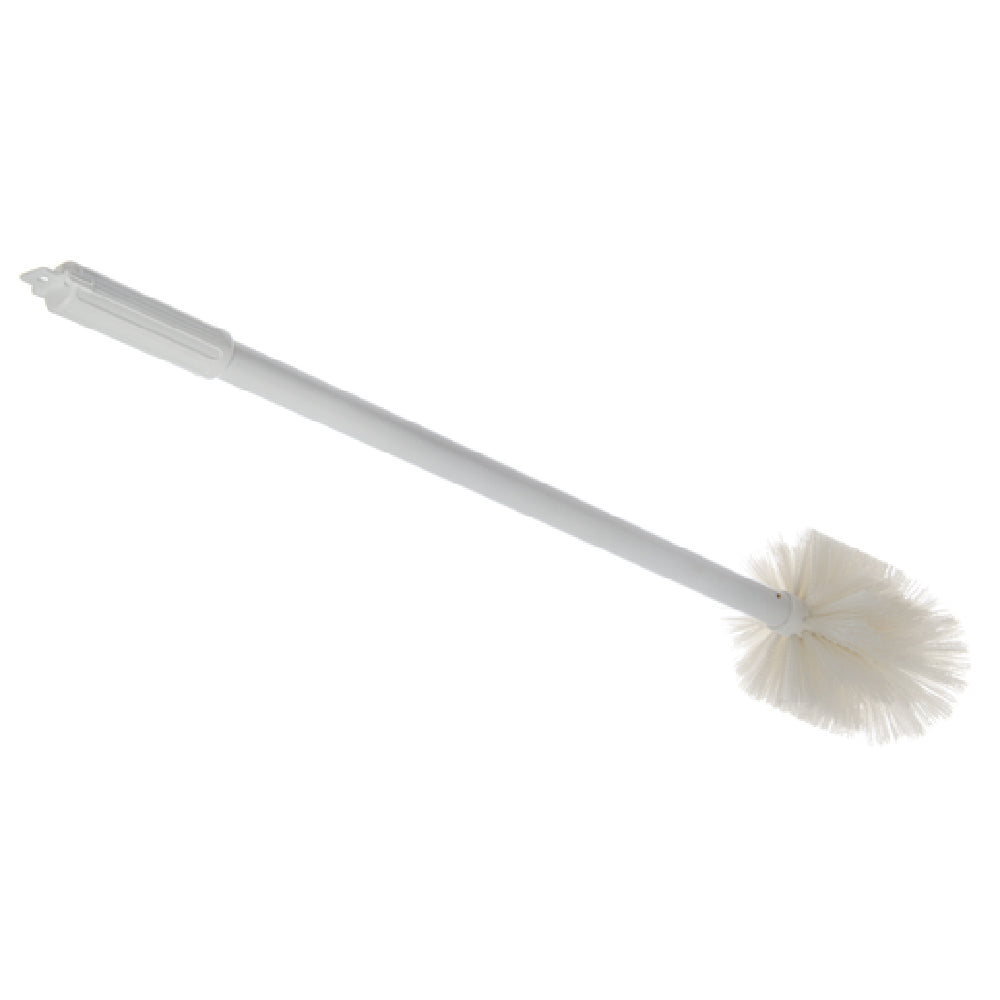 The Carlisle 4000802 Carlisle Sparta® Multi-Purpose Valve & Fitting Brush 30" Long is a versatile cleaning tool designed for industrial and commercial applications. Featuring a robust 30-inch length, this brush is engineered to clean hard-to-reach areas with precision and ease. The brush head measures 6 inches in length and 5 inches in diameter, providing ample coverage to tackle various cleaning tasks. Equipped with medium stiff polyester bristles, it ensures efficient cleaning without damaging delicate surfaces. The bristles are adept at removing debris and buildup from valves and fittings, making it an essential tool for maintenance in plumbing, HVAC, and similar industries. The white plastic handle is durable and lightweight, offering a comfortable grip for prolonged use. The product's white color scheme adds a clean, professional appearance, while being BPA free ensures that it meets safety standards for use in environments where food safety is a concern. The Carlisle 4000802 brush is a reliable choice for professionals seeking a durable and effective cleaning solution for maintaining the integrity of various systems through regular upkeep.