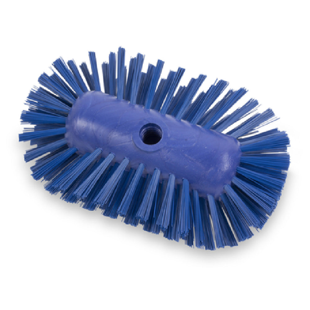 The Carlisle 40043EC14 Carlisle Sparta® Tank & Kettle Brush 9-1/2"L x 5-1/2"W is an essential tool designed for efficient cleaning in various industrial and commercial settings. With a brush head measuring 9-1/2 inches in length and 5-1/2 inches in width, this product is tailored to accommodate the rigorous demands of cleaning large tanks and kettles. Its use of polyester bristles ensures durability and effective scrubbing, capable of handling tough cleaning tasks while maintaining a gentle touch on surfaces to prevent damage. The blue color of the bristles not only enhances visibility during cleaning operations but also assists in maintaining color coding in compliance with hygiene protocols. This brush head is specifically engineered to meet the needs of industries where sanitation and cleanliness are paramount, such as food processing, brewing, and pharmaceutical manufacturing. The Carlisle Sparta® Tank & Kettle Brush is a reliable choice for professionals seeking a high-quality, purpose-designed cleaning tool that harmonizes efficiency with longevity, making it a versatile addition to any cleaning operation within these industries. By focusing on technical specifications and practical applications, this brush addresses the unique requirements of its target markets, providing an indispensable cleaning solution.