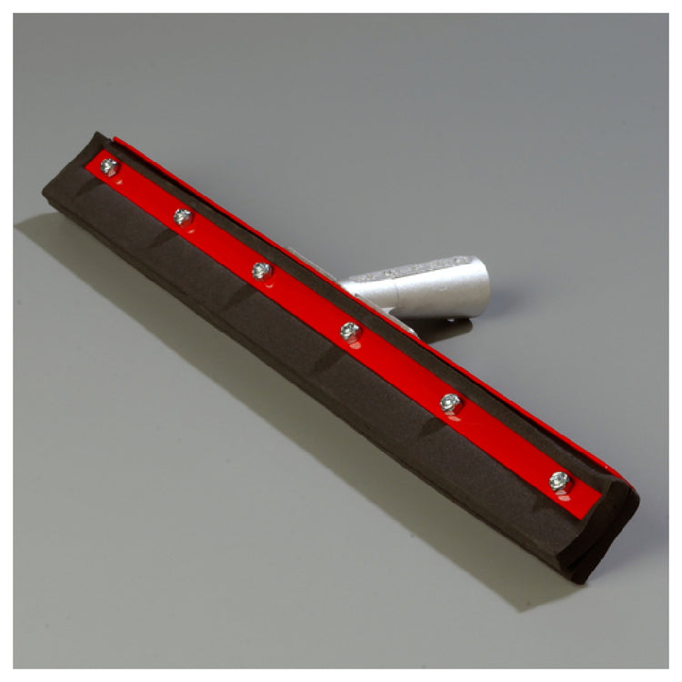 The Carlisle 4008100 Carlisle Flo-Pac® Floor Squeegee Head is a specialized cleaning tool, measuring 18 inches in length, designed for efficient floor maintenance across various industries. This squeegee head features a straight double black foam neoprene rubber blade, renowned for its medium flexibility, which ensures effective water and debris removal without leaving marks. The non-marking properties make it particularly suitable for delicate surfaces where preserving aesthetic integrity is essential. Engineered to accommodate a 1-1/3 inch tapered handle hole, this product facilitates easy attachment to standard handles, optimizing adaptability and user convenience (handle sold separately). Its durable metal frame provides structural stability and longevity, making it a reliable choice for high-traffic environments such as hospitals, commercial kitchens, and industrial facilities. The standard color design integrates seamlessly into any professional setting. With its robust construction and functional design, the Carlisle 4008100 meets the rigorous demands of both commercial cleaning services and smaller businesses looking for dependable and efficient floor maintenance solutions.
