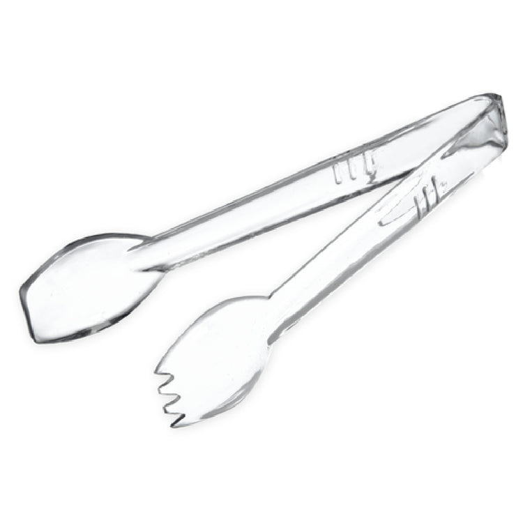 The Carlisle 400907 Carlisle Carly® Salad Tongs 9"L is a versatile kitchen tool designed for a wide variety of food service operations. With a length of 9 inches, these salad tongs are crafted from durable polycarbonate, ensuring they are stain, break, and chip-resistant, making them a long-lasting addition to any kitchen. The tongs can withstand a temperature range of up to 212° F, with dry heat tolerance reaching up to 270° F, which is ideal for handling a variety of food temperatures without compromising their integrity. These features make them an excellent choice for both cold and hot food applications. Additionally, they are dishwasher safe, facilitating easy and hygienic cleaning. As a recyclable product, they also appeal to environmentally-conscious consumers. The tongs are clear in color and NSF certified, guaranteeing they meet strict public health and safety standards. Proudly made in the USA, the Carlisle 400907 Carlisle Carly® Salad Tongs are suitable for restaurants, catering services, and other professional food establishments seeking reliable and safe kitchen utensils. Their combination of durability, high-temperature tolerance, and ease of maintenance positions them as a valuable utensil across different segments of the foodservice industry.
