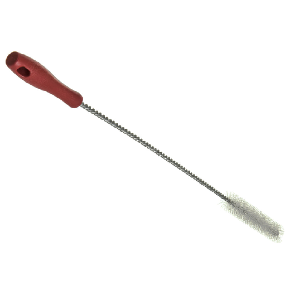 The Carlisle 4011005 Carlisle Sparta® Fryer Brush 28" Long Straight is an essential tool designed for rigorous cleaning tasks in commercial kitchens. Featuring a length of 28 inches, it provides ample reach for deep fryer maintenance and ensures thorough removal of residue. The brush is constructed with 1-3/8" diameter stiff Teflon® wire wound bristles, which offer exceptional durability and resilience, allowing it to withstand frequent and heavy usage. Notably, the bristles are heat-resistant up to 500°F, ensuring safety and performance even in high-temperature cleaning applications. This product's practicality is further enhanced by a cool-touch plastic red handle, which minimizes the risk of burns and enhances user comfort during extended cleaning sessions. Additionally, a convenient hanging hole is integrated into the design, facilitating easy storage and organization in busy kitchen environments. The Carlisle Sparta® Fryer Brush is ideal for foodservice professionals looking to maintain hygiene and efficiency in their operations, offering a reliable solution for the demanding environments of restaurants, cafeterias, and other food preparation areas. Its quality construction and thoughtful design make it a valuable and long-lasting tool for any establishment committed to maintaining cleanliness and safety standards.