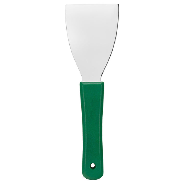 The Carlisle 40130EC09 Carlisle Sparta® Hand Scraper 3" Steel is a versatile tool designed for efficiency and durability, tailored for various segments within the industry. This hand scraper features a robust 3-inch steel blade, offering a sturdy and precise scraping solution for both commercial and industrial applications. The green color finish provides a distinct and professional appearance, aligning with the Sparta® brand's commitment to quality and functionality. Constructed by CFS Brands, this hand scraper exemplifies the integration of superior materials and ergonomic design to enhance user performance in different market scenarios. Ideal for use in food service environments, manufacturing operations, and cleaning tasks, this hand scraper is engineered to withstand rigorous use while maintaining its effectiveness over time. Its compact size ensures ease of handling and maneuverability, making it suitable for detailed work and tight spaces. The Carlisle 40130EC09 Sparta® Hand Scraper stands out with its reliable construction, providing a unique value proposition by combining strength, precision, and versatility. This product is specifically crafted to meet the demanding expectations of professionals, offering a practical solution to achieve optimal results in a wide range of tasks that require rigorous scraping and cleaning actions.