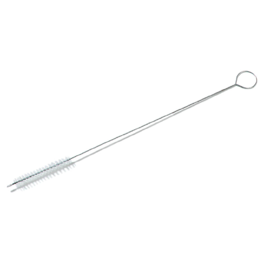 The Carlisle 4015500 Carlisle Spectrum® Dispenser Spout Brush is a precise cleaning tool essential for maintaining hygiene in various industries, particularly food service and hospitality. Measuring 13 inches in length, this brush is designed to access and thoroughly clean narrow dispenser spouts, ensuring the removal of residue and preventing contamination. The brush features 2-1/2 inch long by 1/2 inch diameter wire wound polyester bristles, which are both flexible and resilient, allowing them to adapt to different spout shapes and sizes effectively. Its looped end provides an ergonomic grip for ease of use, while the flexible twisted wire handle enhances maneuverability, making it easier to reach confined areas. The brush is available in a standard color, maintaining a professional appearance in any setting. Additionally, it is BPA Free, adhering to health and safety standards, making it a reliable choice for businesses that prioritize customer safety and product integrity. This brush is particularly invaluable in settings where dispenser maintenance is frequent, such as in restaurants, bars, and cafeterias, ensuring that beverage and condiment dispensers are kept pristine, thereby enhancing service quality and customer satisfaction.