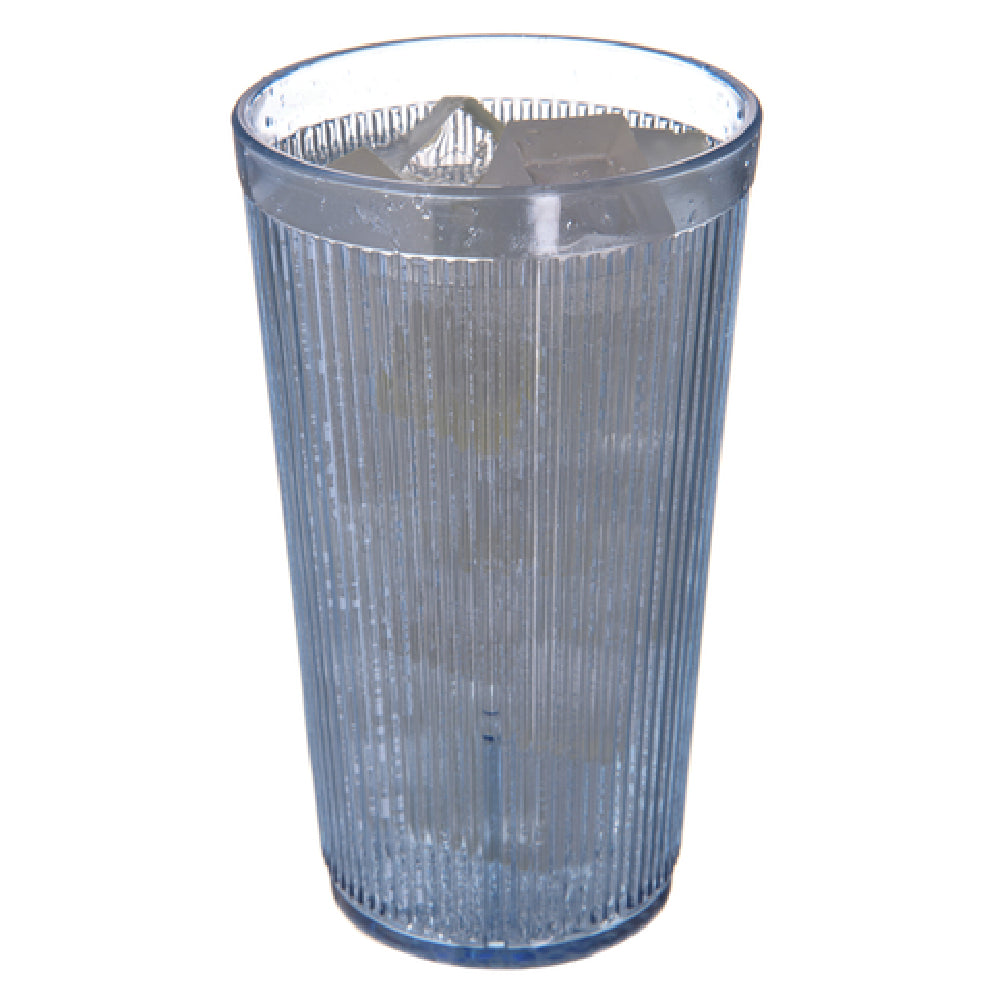 The Carlisle 402054 Carlisle Crystalon® Stack-All® Tumbler 20 Oz. (21.50 Oz. Flush Fill) is a versatile drinkware solution designed for various segments within the foodservice industry. With a capacity of 20 oz, and an extended flush fill capacity of 21.50 oz, this tumbler suits the needs of high-volume environments. Its ribbed texture not only adds an aesthetic touch but also enhances grip, reducing spills. The tumbler is stackable, optimizing storage space in bustling kitchens or dining areas. It is constructed from SAN (Styrene Acrylonitrile), known for its durability, and is resistant to stains, breaks, and chips, making it a reliable choice for everyday use. This tumbler is also BPA-free, underscoring its safety for consumers. With a usable temperature range from 0°F to 180°F, it accommodates both cold and hot beverages. The tumbler is dishwasher safe, offering convenience for kitchen staff in maintaining cleanliness. Available in blue, it provides an appealing visual element to table settings. The product is also recyclable, aligning with environmentally conscious practices. Suitable for fast-paced environments like cafeterias, casual dining establishments, and catering services, the Carlisle Crystalon® Stack-All® Tumbler balances functionality with durability.