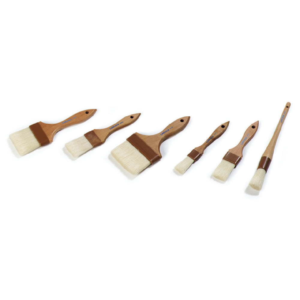 The Carlisle 4037600 Carlisle Sparta® Chef Series™ Basting Brush features a 4-inch wide brush head with epoxy-set bristles, making it a durable and reliable choice for culinary professionals. The brush's bristles are crafted from bleached boar's hair, known for its softness and heat resistance, ensuring that it can withstand temperatures up to 500°F. This makes it ideal for high-heat applications in both professional kitchens and home settings. The bristles are double-boiled for enhanced durability and are water-resistant, adding to their longevity and maintaining their shape and performance during use. The brush is equipped with brown plastic ferrules that securely hold the bristles in place. Its lacquered hardwood handle provides a comfortable grip and adds a touch of elegance, while also being sturdy enough for rigorous use. Made in the USA, this basting brush represents high manufacturing standards and quality materials. It is particularly useful for chefs and culinary enthusiasts who require precision and reliability in their kitchen tools, whether basting meats, glazing pastries, or applying sauces. The Carlisle Sparta® Chef Series™ Basting Brush is a versatile tool that blends functionality with robust construction, catering to the diverse needs of the food service industry.