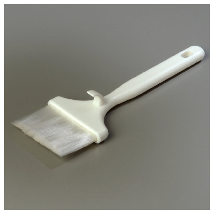 The Carlisle 4040202 Carlisle Sparta Meteor® Pastry/Basting Brush is a precision-engineered tool featuring a 3-inch wide brush head, designed to enhance the culinary endeavors of professional chefs and home bakers alike. This brush is equipped with soft-flagged, molded-in bristles that ensure gentle yet effective application of glazes, sauces, or oils, making it ideal for delicate pastries as well as robust basting tasks. The white plastic handle is ergonomically designed for a comfortable grip, and includes a convenient hook for easy hanging storage. Crafted from durable nylon, this brush promises longevity and reliable performance in various culinary settings. The soft-flagged bristles are particularly beneficial for achieving a smooth, even coating without damaging the food surface. With its combination of innovative design and high-quality materials, the Carlisle Sparta Meteor® Pastry/Basting Brush is a valuable asset in both commercial kitchens and home baking environments. Its robust construction and thoughtful features make it suitable for a wide range of culinary applications, appealing to diverse market segments within the food industry that require precision and quality in their cooking tools.