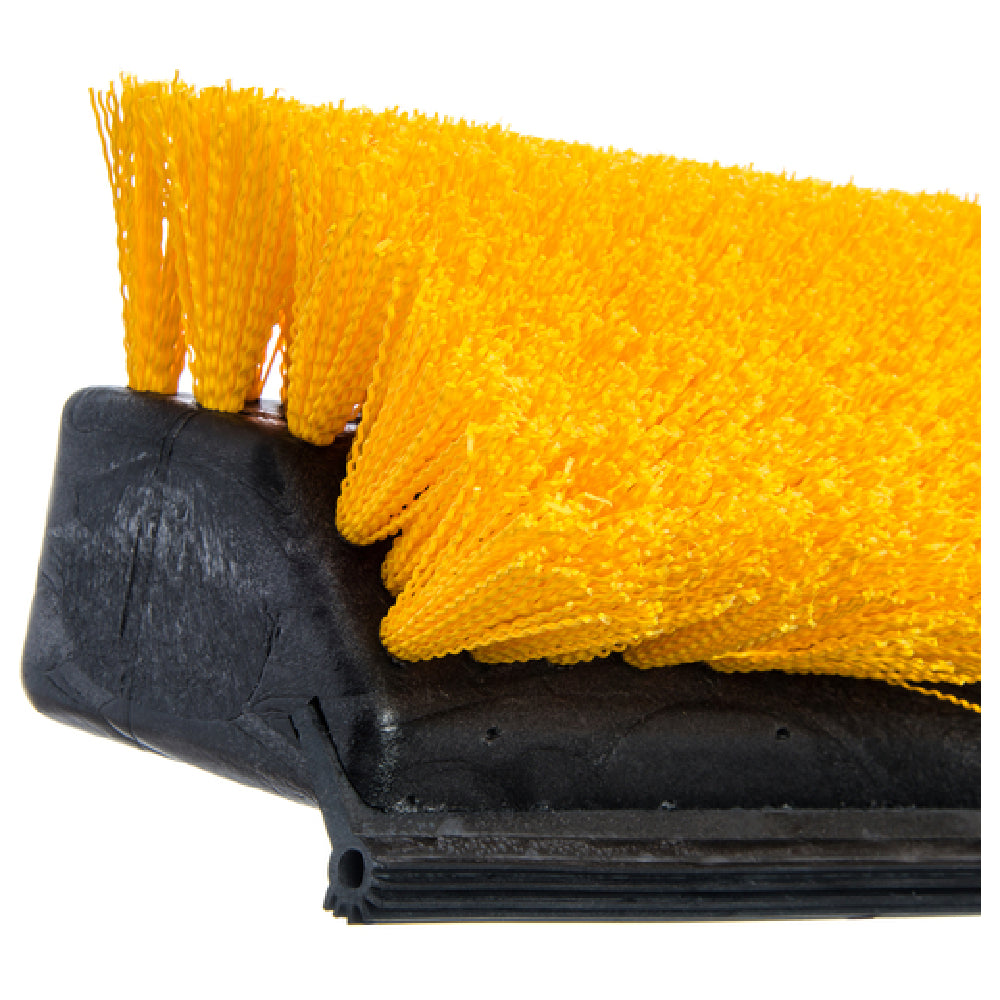 The Carlisle 4042100 Carlisle Flo-Pac® Hi-Lo™ Floor Scrub 10" Plastic Block is a highly versatile cleaning tool designed for efficient floor maintenance across various industry segments. This 10-inch plastic block features a unique split shape, enhancing its ability to clean both flat surfaces and hard-to-reach areas effectively. Equipped with crimped bristles, it ensures thorough cleaning by efficiently capturing dirt and debris. Notably, the floor scrub is designed without a handle, allowing users to pair it with a handle of their choice, thereby offering customization based on specific cleaning requirements. Additionally, the integrated squeegee provides added functionality for removing excess water, making it an ideal choice for environments where water management is crucial. The durable construction of the plastic block promises long-lasting performance, catering to the demands of commercial cleaning operations, janitorial services, and industrial facilities. The Carlisle 4042100 Carlisle Flo-Pac® Hi-Lo™ Floor Scrub stands out for its practical design and adaptability, providing an effective solution for maintaining cleanliness and hygiene in diverse settings.