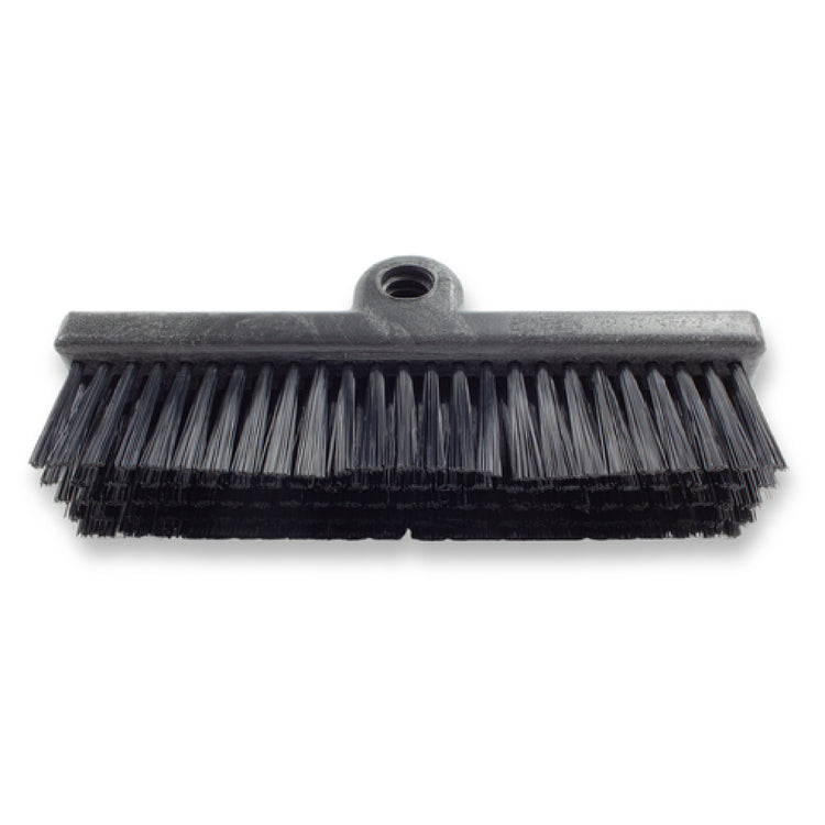 The Carlisle 40423EC03 Carlisle Sparta® Dual Surface Floor Scrub Brush Head Only is a specialized cleaning tool designed to enhance efficiency and versatility in various cleaning environments. Featuring a 10-inch length plastic block, this brush head is crafted for durability and ease of use. Its unique split shape design allows it to tackle different surface types effectively, making it a versatile choice for diverse cleaning tasks. The threaded handle hole ensures compatibility with various handles, allowing users to customize their cleaning tools according to their specific needs. Equipped with crimped polyester bristles, the brush provides robust cleaning power while ensuring gentle treatment of surfaces, reducing the risk of scratches or damage. The brush is colored black, adding to its sleek and professional appearance. Significantly, the product is BPA Free, ensuring safety and environmental responsibility in its composition, which is essential for users who prioritize health and eco-friendliness. This brush head is an ideal solution for industries requiring reliable and adaptable floor cleaning tools, such as hospitality, healthcare, and janitorial services, offering durability and performance in demanding cleaning scenarios.