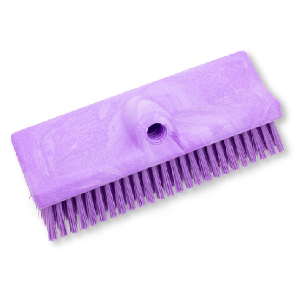The Carlisle 40423EC68 Carlisle Sparta® Dual Surface Floor Scrub Brush Head Only is a versatile cleaning tool designed for efficient floor maintenance. Measuring 10 inches in length, this brush head features a plastic block construction, ensuring durability and longevity in various cleaning environments. The unique split shape of the brush head allows for dual surface cleaning, enhancing its utility in tackling diverse floor types. Equipped with a threaded handle hole, it is compatible with various handles, offering ease of use and adaptability for different cleaning scenarios. The crimped polyester bristles are designed to provide effective cleaning without scratching, making the brush ideal for delicate surfaces. Available in a vibrant purple color, this brush head is BPA-free, aligning with health and safety standards for use in professional spaces. The Carlisle Sparta® Dual Surface Floor Scrub Brush Head is particularly valuable for commercial cleaning operations, janitorial services, and facilities management sectors, where robust and reliable cleaning tools are essential. Its thoughtful design and quality materials make it a dependable choice for maintaining cleanliness and hygiene in a range of environments, from industrial settings to retail and office spaces.