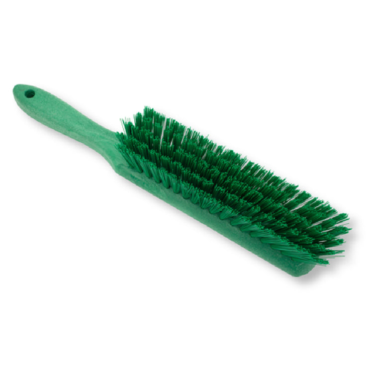 The Carlisle 40480EC09 Carlisle Sparta® Counter/Bench Brush 13-1/2"L Overall is a versatile cleaning tool designed to meet the needs of various industry segments. With its 13-1/2" overall length, this brush features an 8"L x 1-3/4" medium polyester bristle head, which is ideal for effective sweeping on multiple surfaces. The non-absorbent bristles ensure durability and ease of cleaning, making it a practical choice for maintaining hygiene standards in food service, hospitality, and janitorial sectors. The brush's 5" plastic handle provides a comfortable grip for extended use, while the integrated hanging hole offers convenient storage options. Presented in a vibrant green color, the brush not only performs efficiently but also adds a pop of color to your cleaning arsenal, making it easy to spot and use. The Carlisle Sparta® Counter/Bench Brush is engineered for those seeking reliable and efficient cleaning solutions, accommodating the rigorous demands of professional environments. Its combination of size, material, and practical features underscores its unique value proposition, solidifying its role as an essential tool for maintaining cleanliness across various settings.