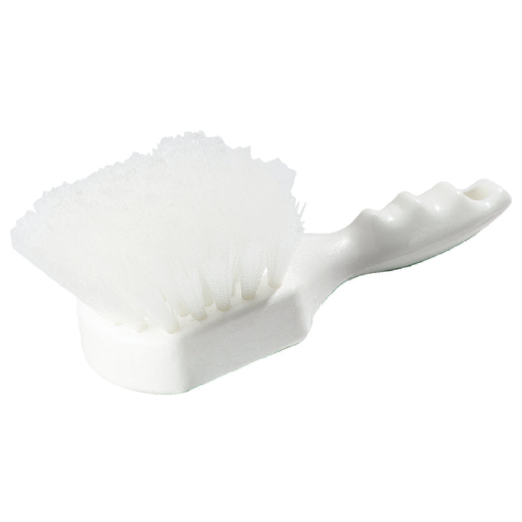 The Carlisle 4054200 Carlisle Sparta® Kitchen Brush is expertly crafted for kitchen utility with an 8-inch length and 3-inch width, making it a compact yet efficient tool. Designed with a hanging hole, it allows for convenient storage, reducing clutter in busy kitchen environments. This kitchen brush is engineered with break-resistant and soak-proof features, ensuring durability and longevity even with frequent use. Its 1-1/4-inch long medium stiff stapleset nylon bristles are adept at tackling a variety of cleaning tasks, providing a balance between flexibility and firmness for effective cleaning. The brush is equipped with a white pistol grip polypropylene handle, which enhances user comfort and control during use. Adhering to safety standards, the materials are BPA-free, making it a suitable choice for health-conscious users. The standard color design complements most kitchen aesthetics. The Carlisle Sparta® Kitchen Brush stands as a versatile cleaning tool for restaurants, catering businesses, and home kitchens alike, blending functionality with resilience.
