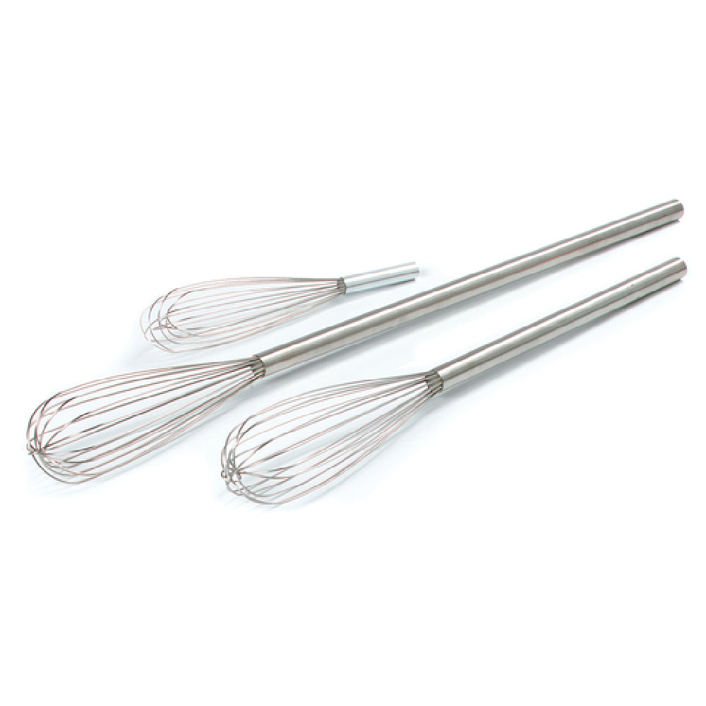 The Carlisle 40682 Carlisle Sparta® Chef Series™ French Whip 48" Fully-sealed is a premium kitchen tool designed for culinary professionals seeking precision and durability. This French whip features a fully-sealed construction, ensuring hygiene and longevity by preventing food particles from becoming trapped. The whip is 48 inches long, making it ideal for large-scale mixing tasks in professional kitchens. Crafted from 18/8 stainless steel, it offers exceptional resistance to rust, ensuring it remains a staple in bustling environments. The whip's spring wire loops are engineered to provide optimal whipping performance, whether you are blending batters or whipping cream. Additionally, the whip is weighted and balanced, allowing for comfortable and efficient use over extended periods. This meticulous balance ensures that chefs can maintain control and consistency in their preparations. Ideal for various segments of the food service industry, including restaurants, bakeries, and catering services, the Carlisle 40682 French Whip is a reliable choice for those who require high-performance kitchen tools. Its robust design and quality materials make it a valuable addition to any professional culinary toolkit, highlighting its role as both a functional and durable instrument in food preparation.