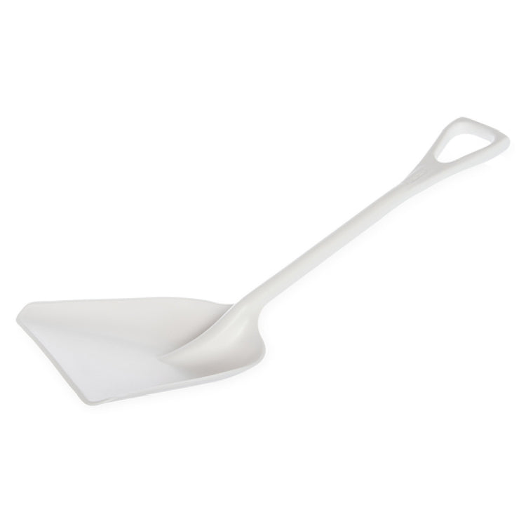 The Carlisle 41076EC02 Carlisle Sparta® Food Service Shovel 11" One-piece is a highly durable tool specifically designed for the rigorous demands of the food service industry. This shovel is crafted from a single piece of high-quality plastic, ensuring robustness and longevity in various operational settings. Its pristine white color not only provides a clean and professional appearance but also aligns with industry standards for hygiene and food safety. The one-piece construction of this shovel eliminates seams and joints, reducing potential bacterial growth areas and making it easy to clean and maintain. With an 11-inch blade, this shovel is ideally suited for handling a wide range of food service tasks, from moving large quantities of ingredients to clearing workspaces efficiently. This particular model from CFS Brands is designed to meet the diverse needs of different segments within the food industry, including restaurants, catering services, and institutional kitchens. Its lightweight yet sturdy design allows for ease of use, enhancing productivity while minimizing user fatigue. As a reliable tool in the Sparta® line, this food service shovel embodies practicality, hygiene, and durability, making it an indispensable asset in maintaining high standards of efficiency and cleanliness in food handling environments.