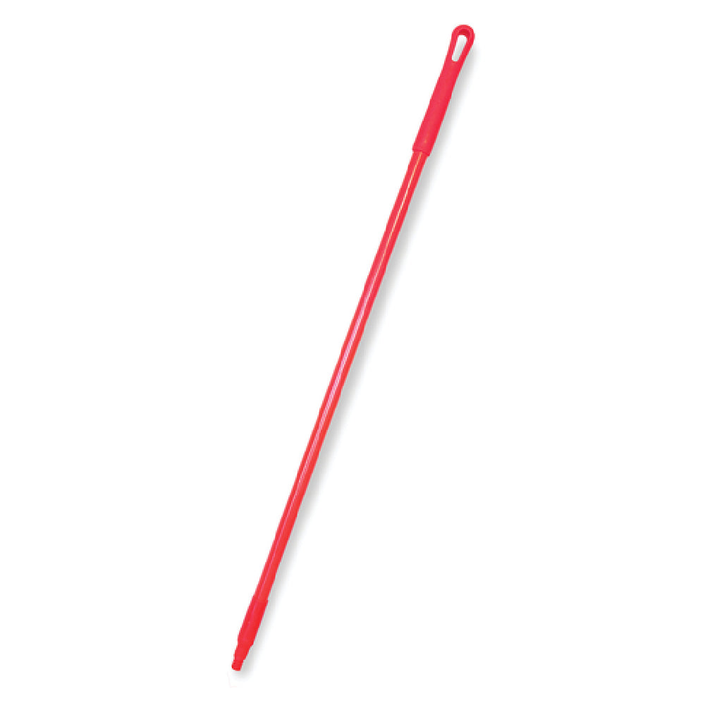 The Carlisle 41225EC05 Carlisle Sparta® Handle 48"L X 1" Dia. Hanging Cap is a meticulously designed tool handle that provides robust support for various industrial and commercial applications. Featuring a 48-inch length and 1-inch diameter, this handle is ergonomically crafted to offer optimal control and balance. Made from high-quality fiberglass, the handle ensures durability and resistance to wear, making it suitable for heavy-duty use. Its threaded end allows for easy attachment to compatible cleaning or maintenance tools, enhancing its versatility across different tasks. The vibrant red color of the handle not only adds a visual appeal but also aids in easy identification among other equipment. The inclusion of a hanging cap facilitates convenient storage, enabling users to keep their workspace organized. This product is ideal for janitorial services, maintenance teams, and industrial environments where reliability and efficiency are paramount. With its combination of strength, functionality, and thoughtful design, the Carlisle Sparta® Handle stands out as a valuable asset for professionals seeking dependable equipment solutions.