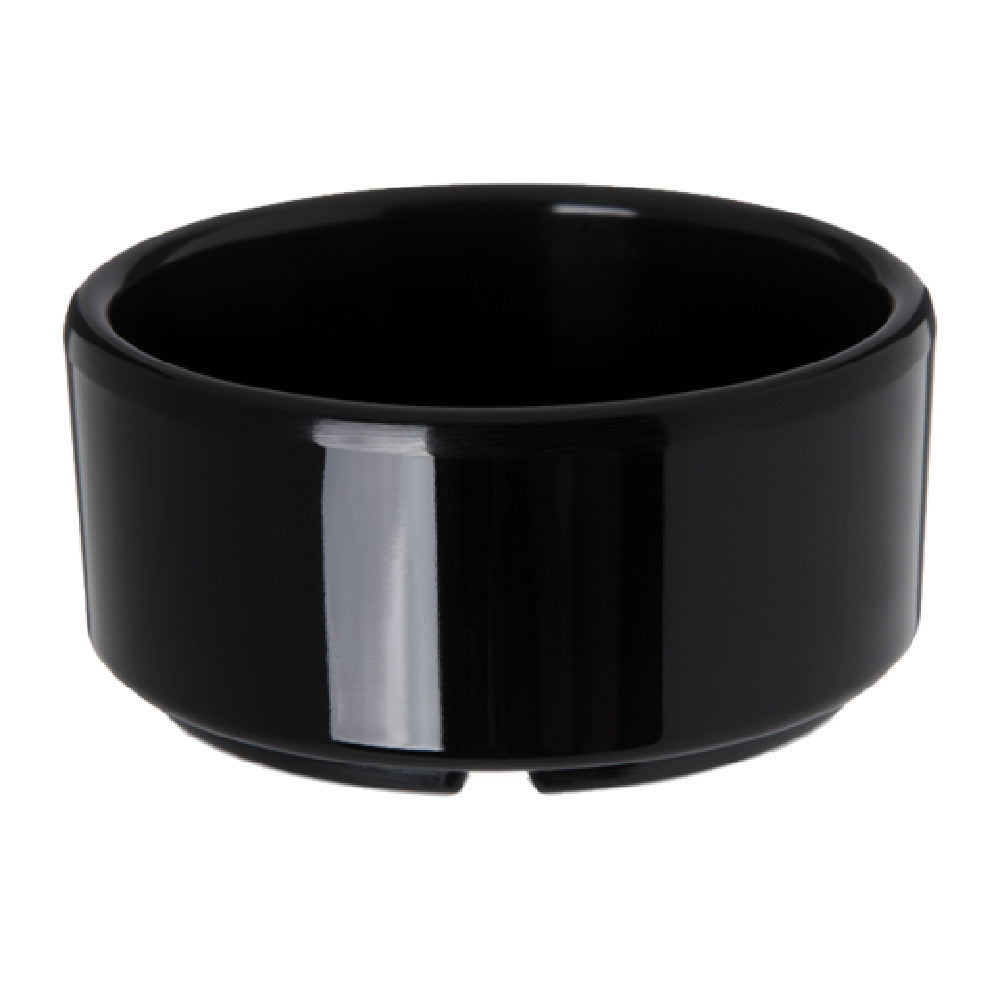 The Carlisle 41403 Carlisle Ramekin 4 Oz. 3-1/4" Dia. is a versatile and durable dish designed to meet the demands of both professional kitchens and home cooking environments. This ramekin features a straight-sided, footed design, providing stability and ease of handling. With a capacity of 4 ounces and a diameter of 3-1/4 inches, it is ideal for serving individual portions of sauces, dips, condiments, or desserts. Crafted from high-quality melamine, this ramekin is not only visually appealing in sleek black but also ensures long-lasting performance. It is dishwasher safe, facilitating easy cleanup after use, and stackable, optimizing storage space in busy kitchens. The ramekin is safe for temperatures up to 212°F, making it suitable for a variety of serving needs. Additionally, it is certified by NSF, ensuring compliance with rigorous public health standards, and is BPA free, highlighting its commitment to safety. The Carlisle 41403 ramekin is a practical and reliable choice for restaurants, caterers, and home cooks alike, combining functional design with safety and convenience.