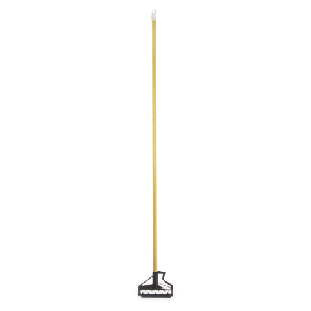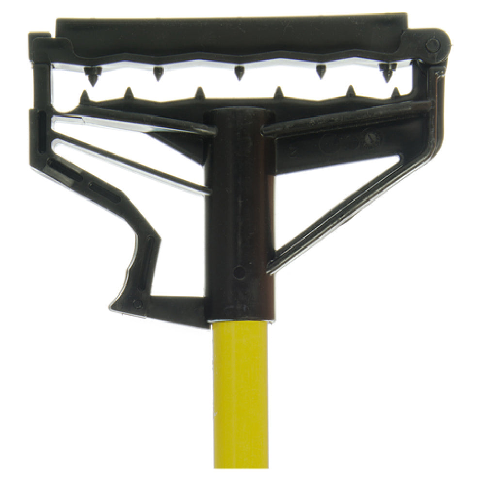 The Carlisle 4166404 Carlisle Sparta® Spectrum® Quik-Release™ Mop Handle 60" Long is a highly functional and durable cleaning tool designed for various industry segments, including janitorial services, hospitality, and healthcare. It features a 60-inch long fiberglass handle with a 1-inch diameter, providing strength and stability for a wide range of cleaning tasks. The hinged gripper bites ensure a secure grip on compatible mop heads, enhancing cleaning efficiency and ease of use. Its flexible plastic head allows for a seamless connection and quick release of mop heads, making it a practical choice for environments requiring frequent mop changes. The handle's vibrant yellow color aids in color-coded cleaning systems, crucial for maintaining hygiene standards in sectors such as food service and healthcare. The robust construction of the Carlisle 4166404 ensures longevity, even in high-usage scenarios, making it an economical choice for businesses. This mop handle's thoughtful design combines flexibility, durability, and practicality, positioning it as a versatile tool in professional cleaning settings where reliability and efficiency are paramount.
