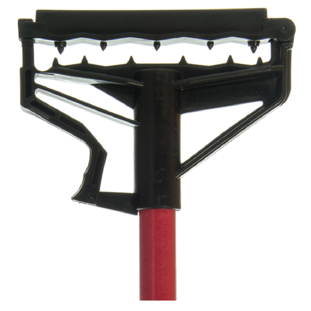 The Carlisle 4166405 Carlisle Sparta® Spectrum® Quik-Release™ Mop Handle is a 60-inch long cleaning tool designed for efficiency and durability in the sanitation industry. This mop handle, with a 1-inch diameter, is constructed from fiberglass, offering strength and resilience for rigorous cleaning tasks. The standout feature of this mop handle is its hinged gripper bites, which provide a secure, quick-release mechanism, allowing for easy attachment and detachment of mop heads. This innovative feature simplifies maintenance and promotes operational efficiency across various cleaning environments. The flexible plastic head of the mop handle ensures adaptability and ease of use, catering to the unique cleaning needs of different facilities. Available in a vibrant red color, the mop handle is part of the Spectrum® line, which is designed for color-coded cleaning systems to prevent cross-contamination. This makes the Carlisle 4166405 an ideal choice for health-conscious establishments such as hospitals, schools, and food service operations, where hygiene is paramount. The blend of durable materials and smart design underscores the handle’s value proposition as a reliable tool for professional cleaning services, ensuring long-term use and compatibility with standard mop heads.