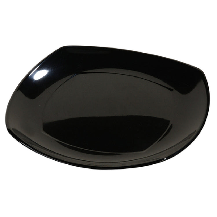 The Carlisle 4330603 Carlisle Dinner Plate 9-1/2" X 9-1/2" Square is a meticulously designed dinnerware piece that caters to both aesthetic appeal and functional durability, ideal for various segments within the food service industry. The square plate measures 9-1/2 inches on each side, featuring upturned corners and a rolled edge, which not only enhances its modern design but also adds structural integrity. The reinforced rim and foot ensure the plate is robust and capable of withstanding frequent use. Crafted from melamine, this black dinner plate is BPA Free and NSF certified, guaranteeing its safety and compliance with food industry standards. It is dishwasher safe and resistant to stains, chips, and breaks, making it an excellent choice for high-turnover environments such as restaurants and catering services. Safe for use at temperatures up to 212°F, it resists drawing heat or cold away from food, maintaining optimal serving temperatures. The stackable design allows for space-efficient storage, crucial for establishments with limited storage space. The Carlisle Dinner Plate is a versatile choice, combining durability with a sleek design, making it suitable for any food service operation aiming for both practicality and style.