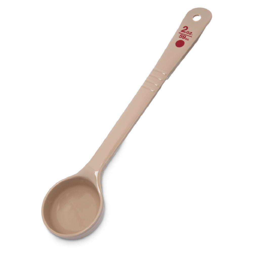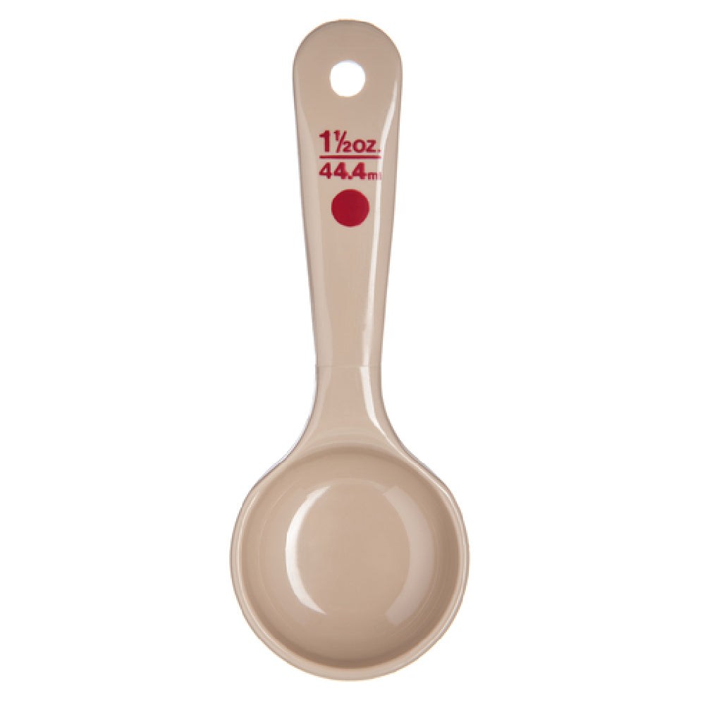 The Carlisle 435806 Carlisle Measure Misers® Portion Server 1-1/2 Oz. Solid is an ideal tool for precise portion control in various culinary settings. Crafted from durable polycarbonate, this utensil ensures longevity and resilience, making it suitable for rigorous daily use. The server's 1-1/2-ounce capacity is solidly designed to handle a variety of ingredients, providing consistent measurements that are vital in maintaining cost control and achieving desired flavor profiles. Its beige color is not only aesthetically pleasing but also features color-coded capacities for easy identification among kitchen staff, enhancing operational efficiency. The Carlisle Measure Misers® Portion Server adheres to NSF standards, signifying its commitment to safety, quality, and public health. This product's utility spans multiple markets within the foodservice industry, including restaurants, cafeterias, and catering services, where precise portioning is crucial for both economic and quality control. Its robust construction and thoughtful design make it a valuable addition to any professional kitchen, streamlining operations while promoting accuracy and consistency in food preparation.