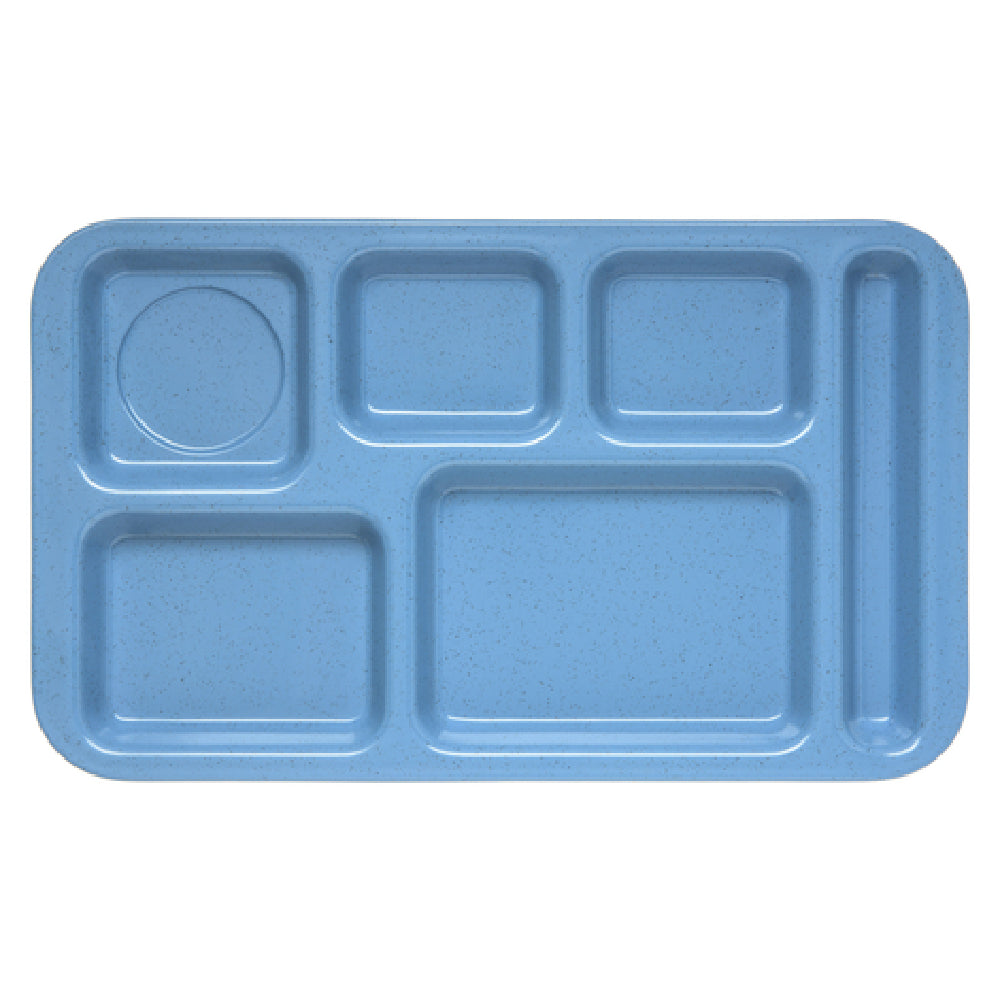 The Carlisle 4398392 Carlisle Space Saver Compartment Tray 15"L X 9"W Right-handed is an expertly designed dining accessory, tailored for efficiency and durability in various dining settings. This rectangular tray, measuring 15 inches in length and 9 inches in width, is crafted specifically for right-handed users. It features a smart layout with six compartments - three small upper, two large lower, and one designated flatware section - optimizing space management and organization. Constructed from robust melamine, this tray is both stain and scratch resistant, ensuring long-lasting use even under heavy-duty conditions. Its break-resistant nature adds an extra layer of resilience, making it a reliable choice for environments such as cafeterias, hospitals, and educational institutions. The tray's dishwasher-safe attribute guarantees ease of maintenance, while the Sandshades® finish offers a subtle, professional aesthetic. Complying with NSF standards, this compartment tray meets rigorous public health and safety criteria, making it a trustworthy option for any food service operation. The Carlisle 4398392 tray's combination of durability, practicality, and alignment with safety standards makes it a valuable asset for those seeking efficient meal service solutions in both commercial and institutional markets.