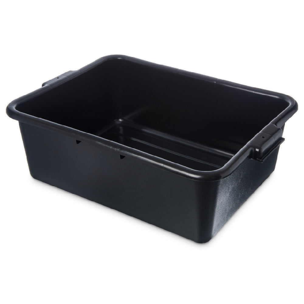 The Carlisle 4401103 Carlisle Comfort Curve™ Bus Box 1 Compartment 20"L x 15"W x 7"H is a high-performance utility solution designed for efficient organization in food service environments. Featuring a single compartment with dimensions of 20 inches in length, 15 inches in width, and 7 inches in height, this bus box is perfectly sized for handling various kitchen tasks. The reinforced rims ensure durability, making it capable of withstanding heavy loads and rough handling typical in commercial settings. Its stackable design allows for convenient storage, optimizing space in busy kitchens. The Comfort Curve™ handles are a standout feature, providing an ergonomic grip that enhances ease of transport and reduces strain during handling. Made from high-density polyethylene, this bus box is not only robust but also dishwasher safe, simplifying the cleaning process. Available in a sleek black color, it aligns with professional kitchen aesthetics. Certified by the NSF, this bus box adheres to stringent public health and safety requirements, making it suitable for use in diverse food service segments including restaurants, catering services, and institutional dining facilities.