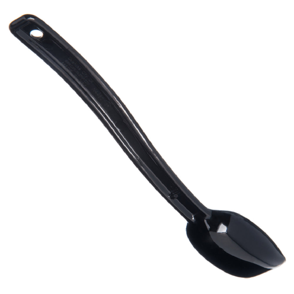 The Carlisle 446003 Carlisle Salad/Buffet Spoon is a solid, high-performing utensil ideal for various food service applications. With a capacity of 1/2 oz. and a length of 9 inches, this spoon is designed for efficient serving. Manufactured in the USA, it endures temperatures up to 212°F and withstands dry heat up to 270°F, making it versatile for different culinary environments. Constructed from durable black plastic, the spoon's notched handle ensures a firm grip, enhancing ease of use during service. Its dishwasher-safe attribute simplifies cleaning, contributing to kitchen efficiency. The product's compliance with NSF standards underscores its quality and safety, meeting industry requirements for public health. The Carlisle Salad/Buffet Spoon is particularly useful for buffets, catering services, and salad bars, offering reliability and performance in busy settings. Tailored for those seeking a lightweight yet robust serving solution, it integrates seamlessly into commercial kitchens, elevating service standards with its practical design.