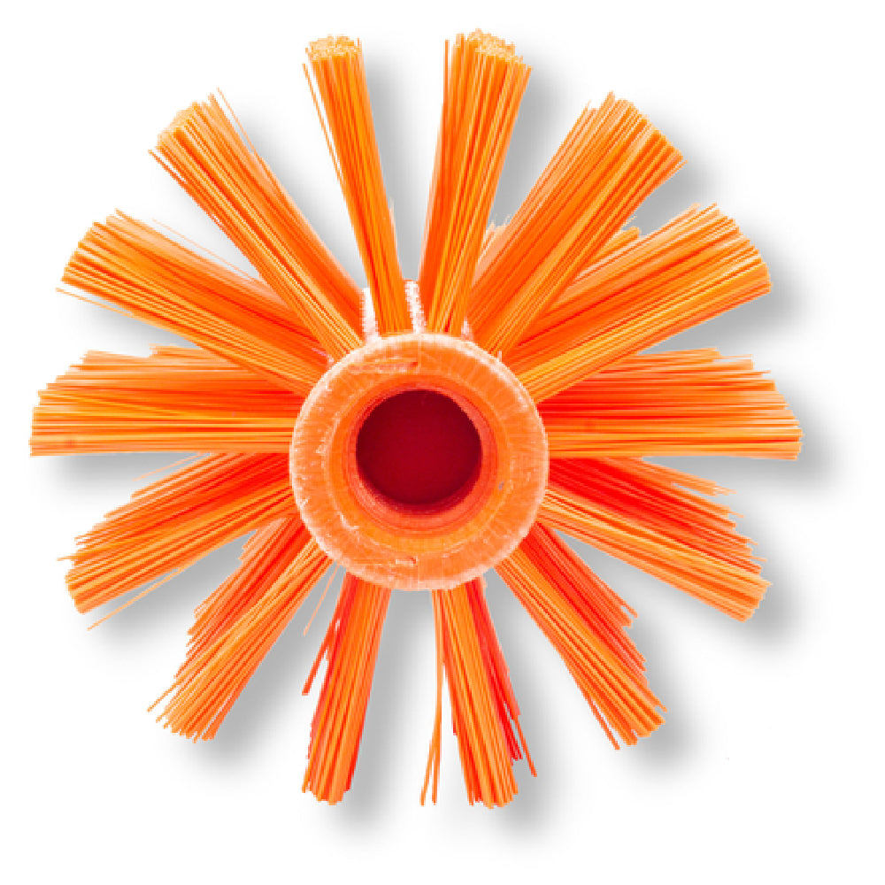 The Carlisle 45004EC24 Carlisle Sparta® Pipe & Valve Brush is a specialized cleaning tool designed for industries requiring meticulous maintenance of pipes and valves. With a 4-inch diameter and a threaded hole, this brush is engineered for precision and efficiency in reaching and cleaning tight spaces. The brush features non-absorbent polyester bristles, which are ideal for maintaining structural integrity and ensuring long-lasting use without absorbing moisture, thus preventing bacterial growth. Its vibrant orange color not only enhances visibility during use but also helps in quick identification among other tools. The technical specifications highlight its suitability for rigorous cleaning tasks, making it an invaluable asset in sectors such as plumbing, chemical processing, and manufacturing. By integrating such a tool into their operations, businesses can enhance their maintenance routines, leading to improved system performance and reduced downtime. This brush exemplifies practical design and functionality, providing a reliable solution for professionals who prioritize cleanliness and efficiency in their workflows. Its compatibility with various pipe and valve systems makes it a versatile choice for different market segments, particularly those demanding high standards of hygiene and operational efficiency.