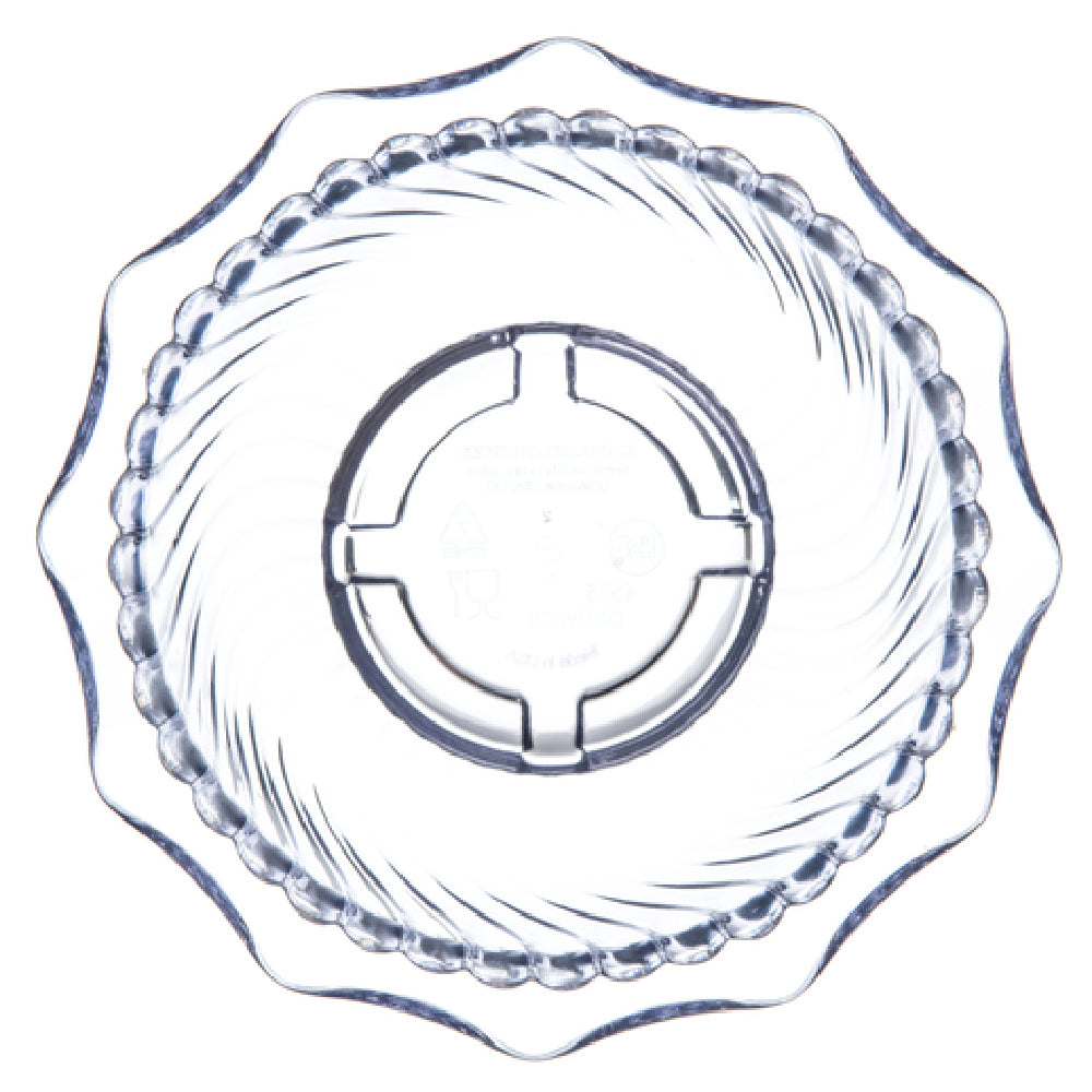 The Carlisle 453507 Carlisle Tulip Berry Dish 8 Oz., with a diameter of 4-5/8 inches, is expertly crafted to meet the needs of various dining settings, from casual eateries to formal banquets. This dish features a distinctive scalloped edge design, enhancing its visual appeal and making it ideal for presenting berries, desserts, and small appetizers. Engineered for practicality, it is dishwasher safe, allowing for effortless cleaning and maintenance. The dish is constructed from SAN (styrene acrylonitrile resin), ensuring it is resistant to stains, chipping, and breaking, thus promising durability and longevity in high-traffic environments. Its stackable design facilitates efficient storage, maximizing space in busy kitchens. The clear construction of the dish adds a touch of elegance, suitable for showcasing vibrant food presentations. Certified by NSF, this dish meets strict public health and safety standards, providing confidence in its quality and safety for food service operations. Proudly made in the USA, the Carlisle Tulip Berry Dish embodies a combination of style, durability, and functionality, making it a versatile addition to any restaurant, catering service, or hospitality venue seeking reliable and aesthetically pleasing serving solutions.
