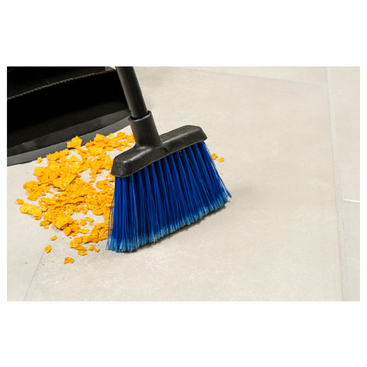 The Carlisle 4685314 Carlisle Duo-Sweep® Flagged Light Industrial Broom is a meticulously designed cleaning tool with a 12" wide head, optimized for light industrial applications. This broom's innovative design includes flagged bristles, which are gentle yet effective, allowing for efficient sweeping of fine dust and debris without damaging surfaces. Its balanced construction provides ease of use and minimizes user fatigue, making it an ideal choice for prolonged cleaning tasks. The broom features a distinctive blue color, assisting in easy identification and organization within a variety of work environments, from warehouses to retail spaces. CFS Brands have engineered this broom to meet the demands of different market segments, including janitorial services, facility maintenance, and industrial cleaning sectors. Its robustness and user-friendly design ensure reliable performance across a spectrum of surfaces, highlighting its versatility and adaptability in diverse cleaning scenarios. The Carlisle 4685314 broom, with its combination of functional design and durable materials, represents a valuable asset for those requiring an effective, light industrial sweeping solution.