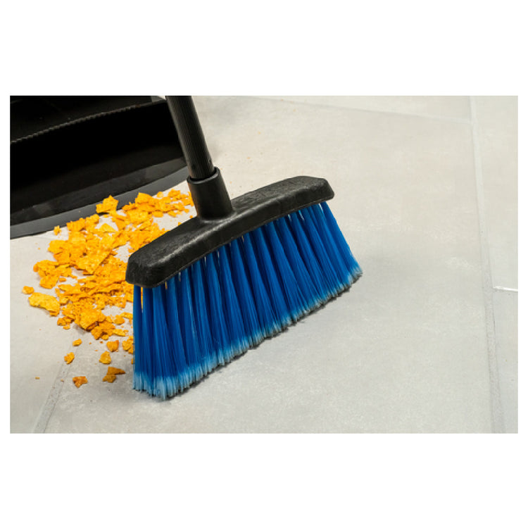 The Carlisle 4685914 Carlisle Duo-Sweep® Flagged Lobby Broom 30"L Black Metal Handle is a specialized cleaning tool designed for various applications across multiple market segments. Featuring a 30-inch black metal handle, this broom is engineered for balanced use, ensuring comfortable and efficient sweeping. The flagged bristles are crafted to effectively capture fine dust and debris, making it suitable for both commercial and industrial settings where maintaining cleanliness is paramount. Offered in a distinctive blue hue, the broom is easily identifiable and can be integrated seamlessly into color-coded cleaning systems to prevent cross-contamination in sensitive environments. Manufactured by CFS Brands, this Duo-Sweep® model epitomizes durability and reliability, key attributes for high-traffic areas such as lobbies, restaurants, and retail spaces. The broom’s robust construction and ergonomic design cater to the needs of janitorial services and facilities management, providing an optimal balance between functionality and ease of use. With its attention to detail and quality, the Carlisle 4685914 stands out as an essential tool for maintaining impeccable cleanliness standards in diverse industry applications.