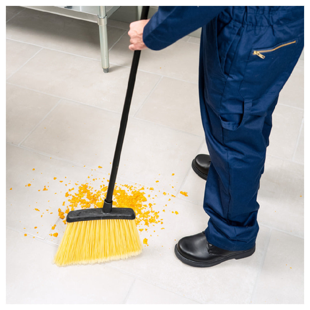 The Carlisle 4686500 Carlisle Duo-Sweep® Flagged Heavy Duty Angle Broom is a meticulously designed cleaning tool tailored to meet the demands of both industrial and commercial environments. Featuring a 48-inch black metal handle, this broom is engineered for durability and extended reach, affording users the ability to tackle large-scale cleaning operations efficiently. The heavy-duty design ensures resilience against rigorous use, while the flagged bristles are specifically crafted for superior dust and debris capture, enhancing the cleaning performance on diverse surfaces. By integrating an angled broom head, this product offers enhanced maneuverability, allowing users to access tight corners and hard-to-reach areas effortlessly. The combination of its robust construction and thoughtful design elements makes the Carlisle Duo-Sweep® an ideal choice for facilities ranging from warehouses and factories to retail spaces and educational institutions. The emphasis on natural materials in its build further highlights its eco-friendly considerations, aligning with sustainable practices. This broom not only meets the functional requirements of high-traffic environments but also adds value through its blend of practicality and efficiency in cleaning tasks, making it an essential tool for businesses seeking reliability and performance in their janitorial equipment.
