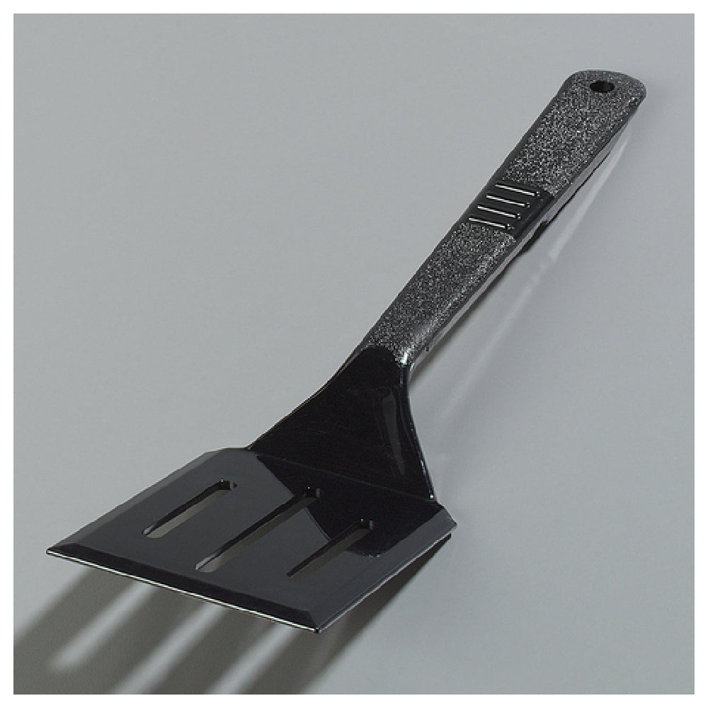 The Carlisle 490003 Carlisle Turner 13-1/2" Slotted is a versatile kitchen tool that combines durability with practicality, making it an essential item for professional chefs and home cooks alike. This turner is crafted from robust polysulfone material, ensuring resilience and longevity. Its slotted design, measuring 13-1/2 inches, facilitates efficient food handling and drainage, making it particularly useful for tasks requiring precision and control. The turner includes a rest notch, which aids in keeping the utensil secure on the edge of cookware, while a hanging hole offers convenient storage options. This product is heat-resistant, capable of withstanding temperatures from -40°C to 375°F, allowing it to perform reliably under various cooking conditions. Its dishwasher-safe feature ensures easy cleaning and maintenance, aligning with the needs of busy kitchens. Available in a sleek black color, the turner is NSF certified, guaranteeing compliance with rigorous public health and safety standards. The Carlisle 490003 Carlisle Turner is ideal for diverse culinary environments, providing a combination of functionality and safety that meets the demands of both commercial and personal cooking settings.