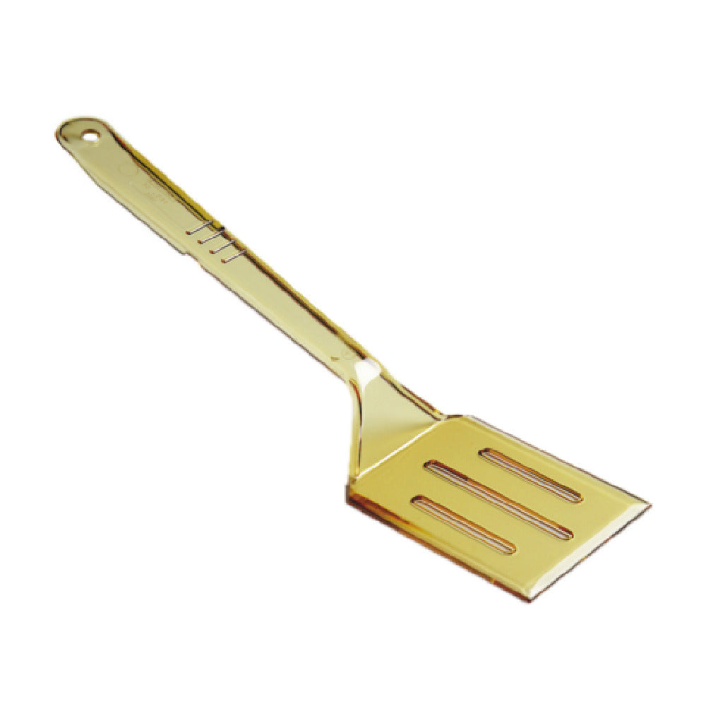 The Carlisle 490013 Carlisle Turner 13-1/2" Slotted is a versatile kitchen tool designed for professional chefs and kitchen enthusiasts alike. With a length of 13-1/2 inches, this slotted turner is crafted from durable polysulfone material, ensuring its longevity and resilience. It features a practical rest notch and a convenient hanging hole, enhancing its utility and storage options in busy kitchen environments. The turner's heat-resistant properties allow it to withstand temperatures ranging from -40°C to 375°F, making it suitable for a variety of cooking applications. Its amber color adds a distinct aesthetic touch, while the NSF certification underscores its adherence to high safety and quality standards. Furthermore, this turner is dishwasher safe, facilitating easy and efficient cleaning, which is crucial in maintaining hygienic kitchen practices. The Carlisle 490013 Slotted Turner is an essential tool for food service operations, offering reliability and functionality, making it ideal for rigorous commercial use. Its thoughtful design and technical specifications cater to different segments of the culinary industry, providing a dependable solution for handling a wide array of cooking tasks.