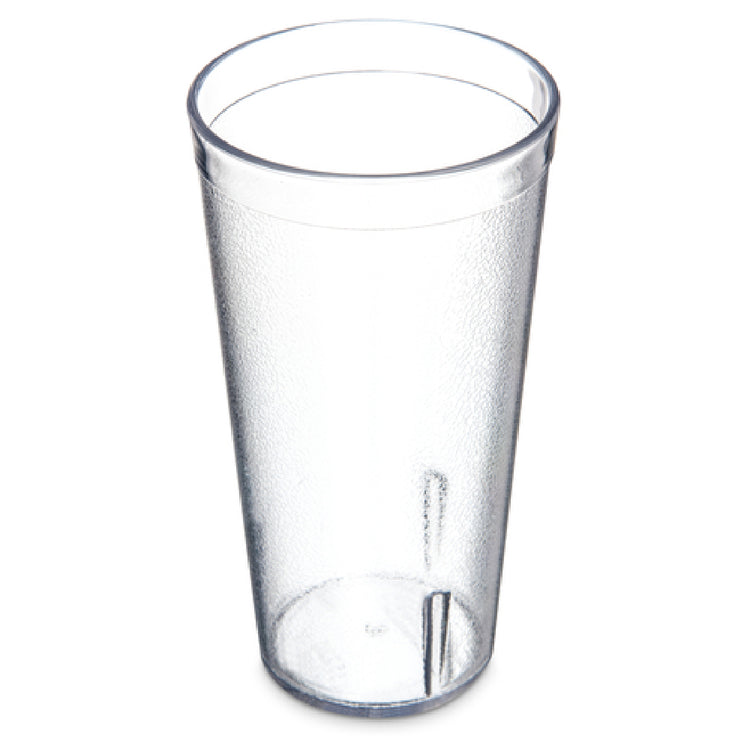 The Carlisle 522007 Carlisle Stackable™ Tumbler 20 Oz. (22.30 Oz. Flush Fill) is a meticulously designed drinking vessel engineered for versatility across various industry segments. With a standard capacity of 20 oz. and a flush fill capacity of 22.30 oz., this tumbler caters to a range of beverage-serving needs. Its tapered design is complemented by a textured exterior, enhancing grip and aesthetic appeal while ensuring practicality in high-traffic environments. This tumbler is stain, break, and chip resistant, signifying its suitability for rigorous use in both commercial and residential settings. Being dishwasher safe, it facilitates efficient cleaning processes, making it ideal for fast-paced environments. The stackable feature optimizes storage space, an essential quality for establishments with limited storage capacity. Manufactured from SAN (styrene acrylonitrile), the tumbler is clear and BPA-free, addressing safety and health concerns. It is also recyclable, aligning with environmentally sustainable practices. Certified by NSF, it adheres to stringent public health protection standards. Proudly made in the USA, the Carlisle Stackable™ Tumbler is packed in cases of 72, reflecting its readiness for bulk usage in food service industries. This tumbler is a pragmatically designed product that balances durability, safety, and efficiency for diverse users.