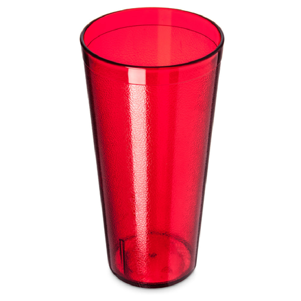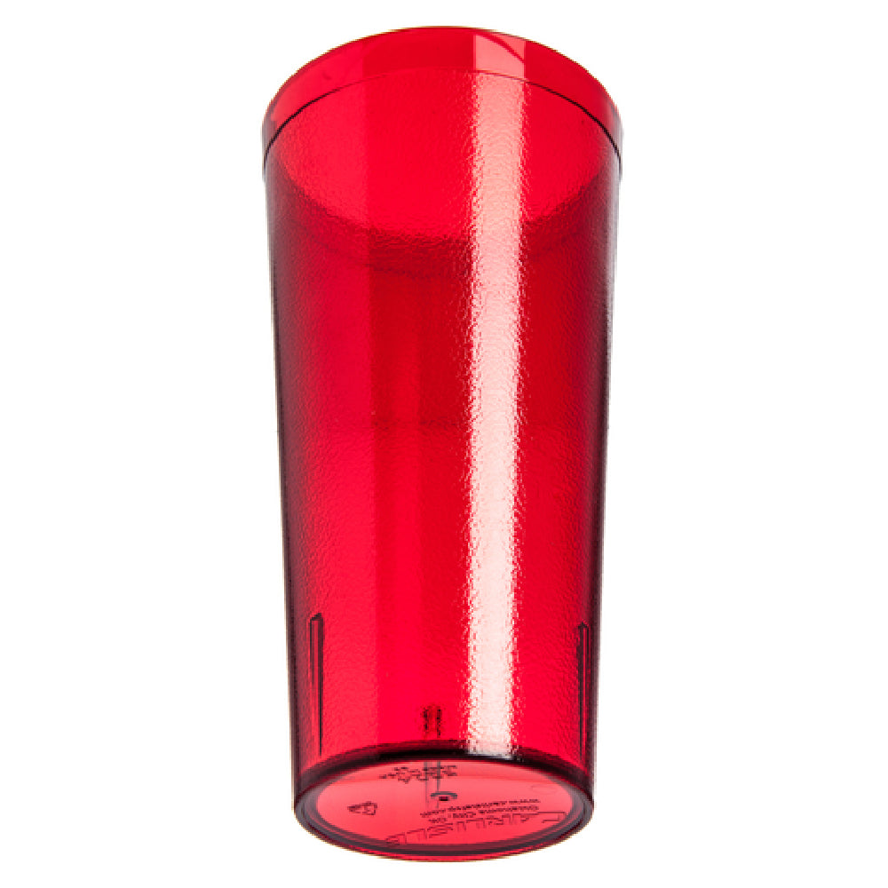 The Carlisle 522410 Carlisle Stackable™ Tumbler 24 Oz. (26.50 Oz. Flush Fill) is an innovative drinkware solution designed for versatility and durability across various market segments. With a capacity of 24 oz. and a flush fill capacity of 26.50 oz., this tumbler caters to the needs of restaurants, cafeterias, and catering services requiring efficient beverage service. Its tapered design and textured exterior enhance grip, reducing the risk of slips and spills, which is particularly advantageous in high-traffic environments. This tumbler is crafted from SAN (Styrene Acrylonitrile), ensuring it is stain, break, and chip resistant, thereby promising longevity even under rigorous usage. Additionally, it features stackability, optimizing storage space and making it ideal for businesses with limited storage capacity. The tumbler is dishwasher safe, facilitating easy cleaning and maintenance, a crucial aspect for health compliance in any food service operation. Being BPA free and NSF certified, this tumbler aligns with safety standards, offering peace of mind to environmentally conscious consumers. Its vibrant ruby color adds an aesthetic appeal, while its recyclable nature supports sustainable practices. Proudly made in the USA, the Carlisle 522410 is a practical and eco-friendly choice for any professional drink service setting.