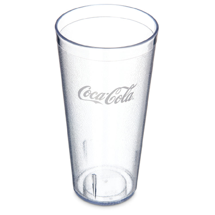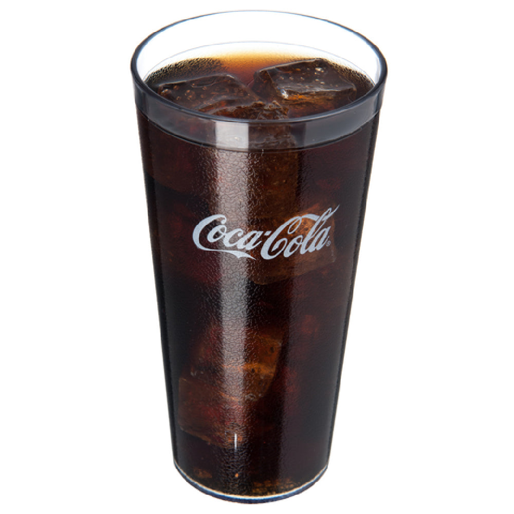The Carlisle 52243550G Carlisle Coca-Cola® Stackable™ Tumbler 24 Oz. (26.50 Oz. Flush Fill) is a versatile drinking solution designed for functionality and durability, catering to a variety of market segments within the food and beverage industry. This tumbler features a tapered shape and a textured exterior that facilitates a secure grip, making it ideal for fast-paced environments such as restaurants, cafeterias, and catering events. With its impressive capacity of 24 oz., and up to 26.50 oz. with a flush fill, it meets the demand for generous beverage servings. Constructed from SAN, this tumbler is stain, break, and chip resistant, ensuring longevity and reducing replacement costs. It is also BPA-free, aligning with health-conscious consumer preferences. The stackable design allows for efficient storage, a valuable trait for establishments with limited space. Being dishwasher safe, it simplifies the cleaning process, enhancing operational efficiency. Moreover, the tumbler is recyclable, supporting eco-friendly initiatives. Each case contains 72 tumblers, offering bulk purchasing benefits for large-scale operations. The clear design complements any table setting, while its Coca-Cola® branding adds a touch of nostalgia and recognition. Overall, the Carlisle 52243550G tumbler combines practicality and style, making it a staple in beverage service settings.