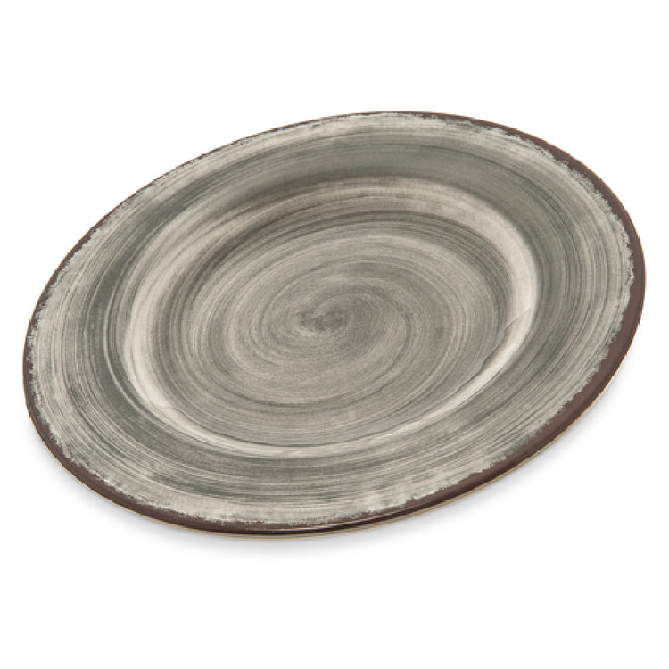 The Carlisle 5400218 Carlisle Mingle™ Salad Plate 9" Dia. Round is a versatile and durable dining solution suitable for various segments of the foodservice industry, particularly in restaurants, catering, and hospitality settings. This round salad plate boasts a 9-inch diameter and features a unique swirl design, adding a touch of elegance to food presentation. Crafted from high-quality melamine, it is both stain and chip-resistant, ensuring longevity and maintaining its aesthetic appeal over time. The plate is dishwasher safe, making it convenient for busy commercial kitchens. It is designed to resist drawing heat or cold away from food, helping to maintain optimal food temperatures. The reinforced rim and foot design enhances its structural integrity, while its stackable nature offers efficient storage solutions. Safe for use in temperatures up to 212°F, this plate accommodates a variety of serving needs. The smoke gray color adds a modern and sleek touch to table settings. Additionally, it is BPA free and NSF certified, reassuring users of its commitment to safety and quality standards. The Carlisle Mingle™ Salad Plate seamlessly combines functionality with sophisticated design, making it a valuable addition to any professional dining environment.