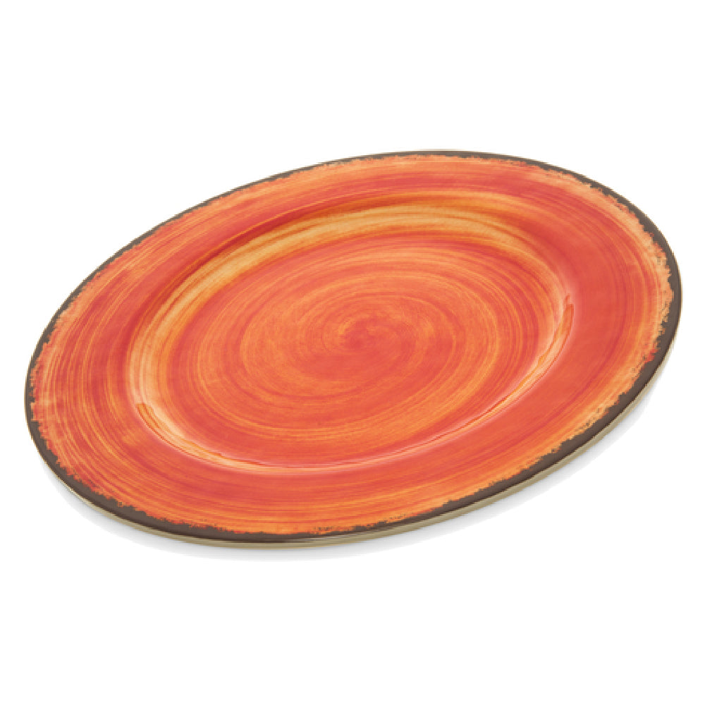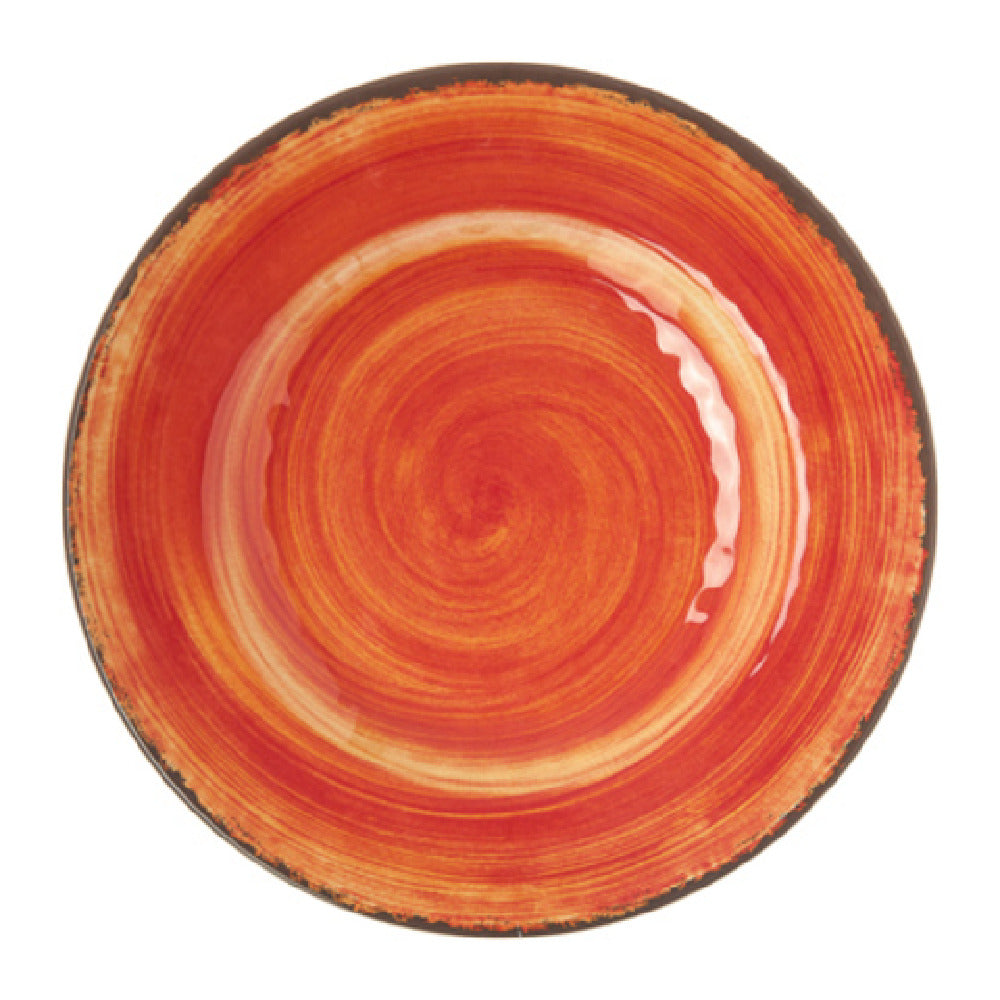 The Carlisle 5400252 Carlisle Mingle™ Salad Plate 9" Dia. Round stands out with its swirl design that combines visual appeal with functional durability. Crafted from melamine, this plate is both stain and chip resistant, ensuring longevity and preserving its vibrant fireball color over time. With dimensions of 9 inches in diameter, the plate is ideal for serving salads and other culinary creations while maintaining temperature integrity, as it resists drawing heat or cold away from food. This feature is beneficial in maintaining optimal food quality during service. The reinforced rim and foot design add to its structural robustness, making it a reliable choice for busy dining environments. Safe for use in temperatures up to 212°F, this plate is also dishwasher safe, facilitating easy and efficient cleaning. Its stackable design offers space-saving advantages for storage, essential for establishments with limited space. Being BPA-free and NSF certified, it meets stringent health and safety standards, making it a trusted option for restaurants, catering services, and other foodservice operations seeking high-quality, durable dinnerware solutions that enhance both presentation and performance.