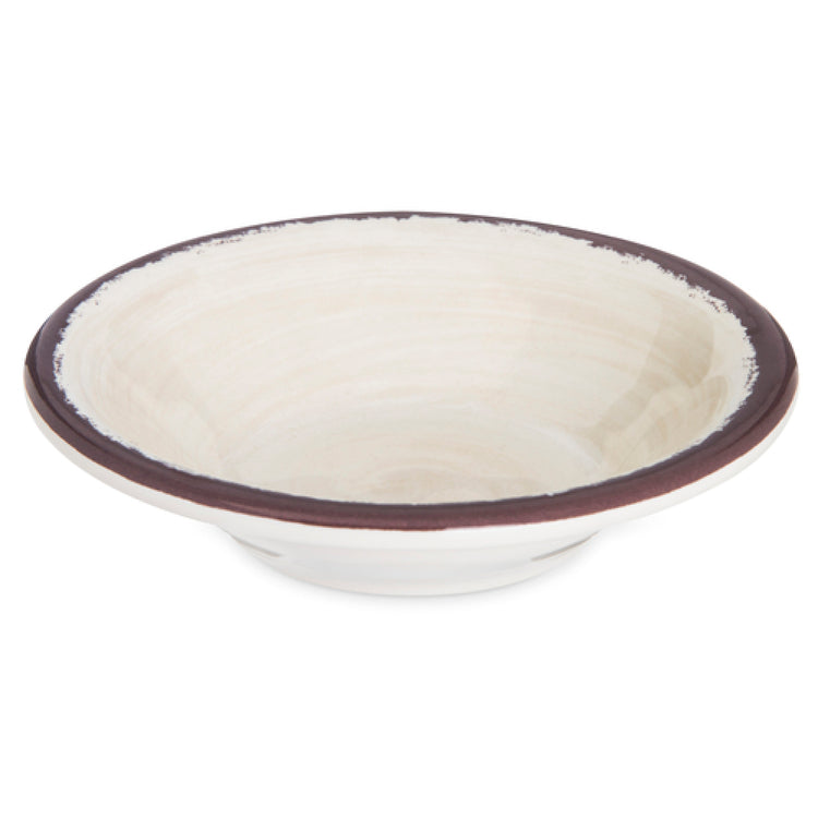 The Carlisle 5401853 Carlisle Mingle™ Fruit Bowl 4.5 Oz. 5" Dia. is a uniquely designed bowl combining functionality with style. This round fruit bowl features a distinct swirl design and is crafted from durable melamine, ensuring it is both stain and chip resistant. With a capacity of 4.5 ounces and a diameter of 5 inches, this bowl is ideal for serving small portions of fruit or other side dishes. The bowl's reinforced rim and foot design contribute to its sturdy construction, making it stackable for convenient storage. Engineered to resist drawing heat or cold away from food, it maintains the perfect serving temperature. Safe for use in dishwashers and suitable for temperatures up to 212°F, this bowl is versatile for various culinary settings, promoting ease of cleaning and usage. The sweet cream color complements any table setting, offering a neutral yet elegant appearance. Importantly, the bowl is BPA free, aligning with health and safety standards, and carries NSF certification, signifying its suitability for commercial use across different market segments, such as restaurants, cafes, and catering services. This product is an excellent choice for those seeking a reliable, stylish, and functional serving solution in the food service industry.