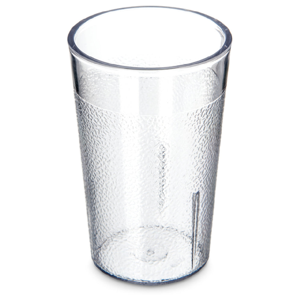 The Carlisle 5501-8107 Carlisle Stackable™ Tumbler 5 Oz. (5.20 Oz. Flush Fill) is an expertly designed beverage container, perfect for various industry applications due to its practical features. With a tapered and textured exterior, this tumbler offers a secure grip while minimizing the risk of slipping. Its construction from SAN (Styrene Acrylonitrile) ensures the tumbler is stain, break, and chip resistant, contributing to its durability and longevity in high-use environments. The clear material allows for easy visibility of contents, making it an excellent choice for both commercial and casual settings. This tumbler is not only dishwasher safe, facilitating easy cleaning, but is also stackable, optimizing storage efficiency in busy kitchens. With a capacity of 5 oz., or 5.20 oz. when filled to the flush fill level, it meets various serving needs. The tumbler is BPA free, ensuring safety for users, and NSF certified, highlighting its compliance with health and safety regulations. Proudly made in the USA, it is available in packs of six and requires a minimum order of 12 packs, which are shrink-wrapped for secure delivery. Additionally, this tumbler is recyclable, aligning with environmentally conscious practices in the food service industry.