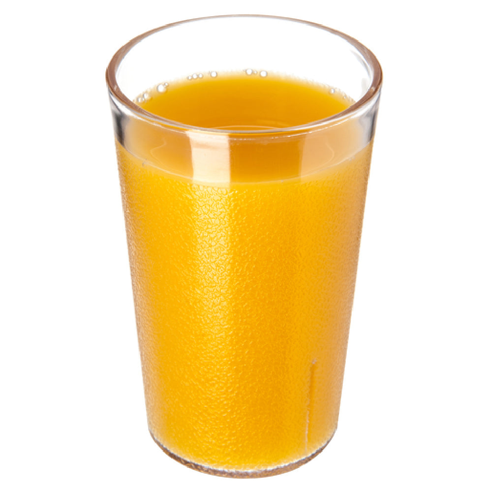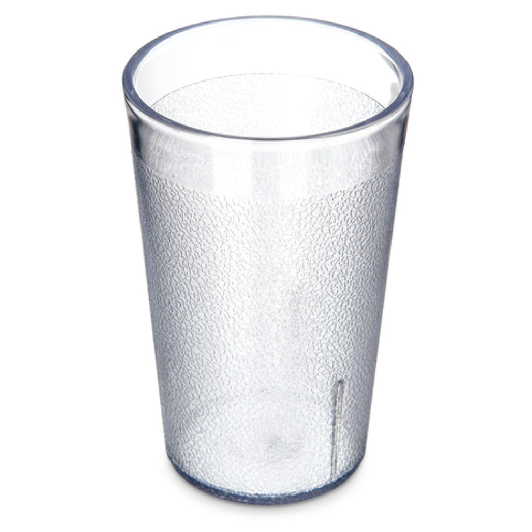 The Carlisle 5506-207 Carlisle Stackable™ Tumbler 9-1/2 Oz. (9.20 Oz. Flush Fill) is meticulously designed to meet the needs of diverse market segments within the food service and hospitality industries. With a capacity of 9-1/2 oz. and a flush fill of 9.20 oz., this tumbler is both practical and efficient. The tumbler features a tapered design with a textured exterior, ensuring a secure grip and enhanced aesthetic appeal. Engineered for durability, it is stain, break, and chip resistant, making it suitable for high-traffic environments. This stackable tumbler is constructed from SAN (Styrene Acrylonitrile), lending it clarity and strength, while also being BPA free and NSF certified, ensuring it meets rigorous safety and quality standards. Its dishwasher-safe nature ensures easy maintenance, while its recyclable composition highlights environmental consciousness. Proudly made in the USA, the Carlisle 5506-207 tumbler is available in a clear finish, enhancing visibility and presentation. Each case includes 24 tumblers, providing ample supply for busy establishments. This tumbler is an exceptional choice for restaurants, cafeterias, and catering services seeking reliable, high-quality drinkware that combines functionality with eco-friendly features.